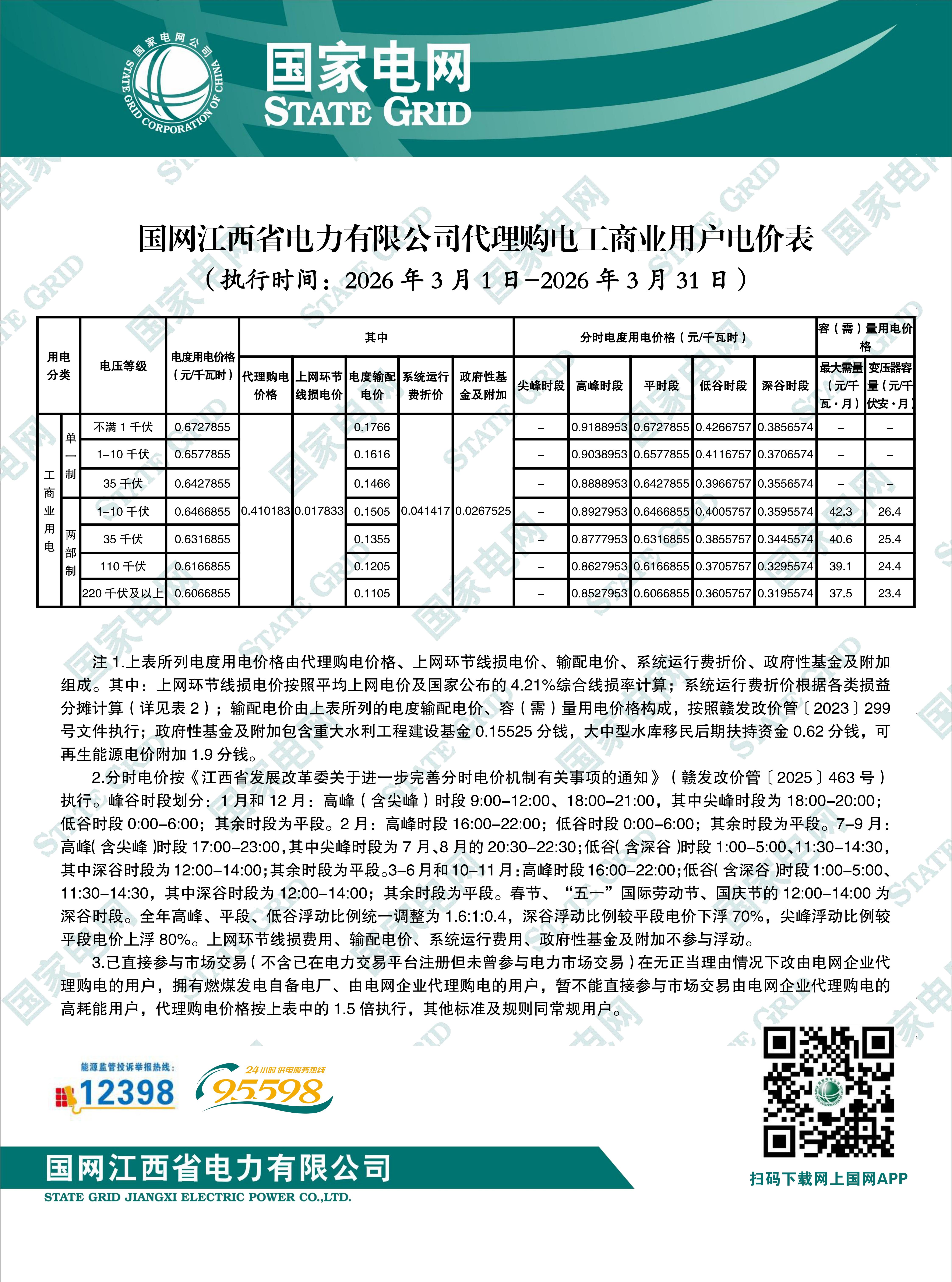 江西省3月工商业电价