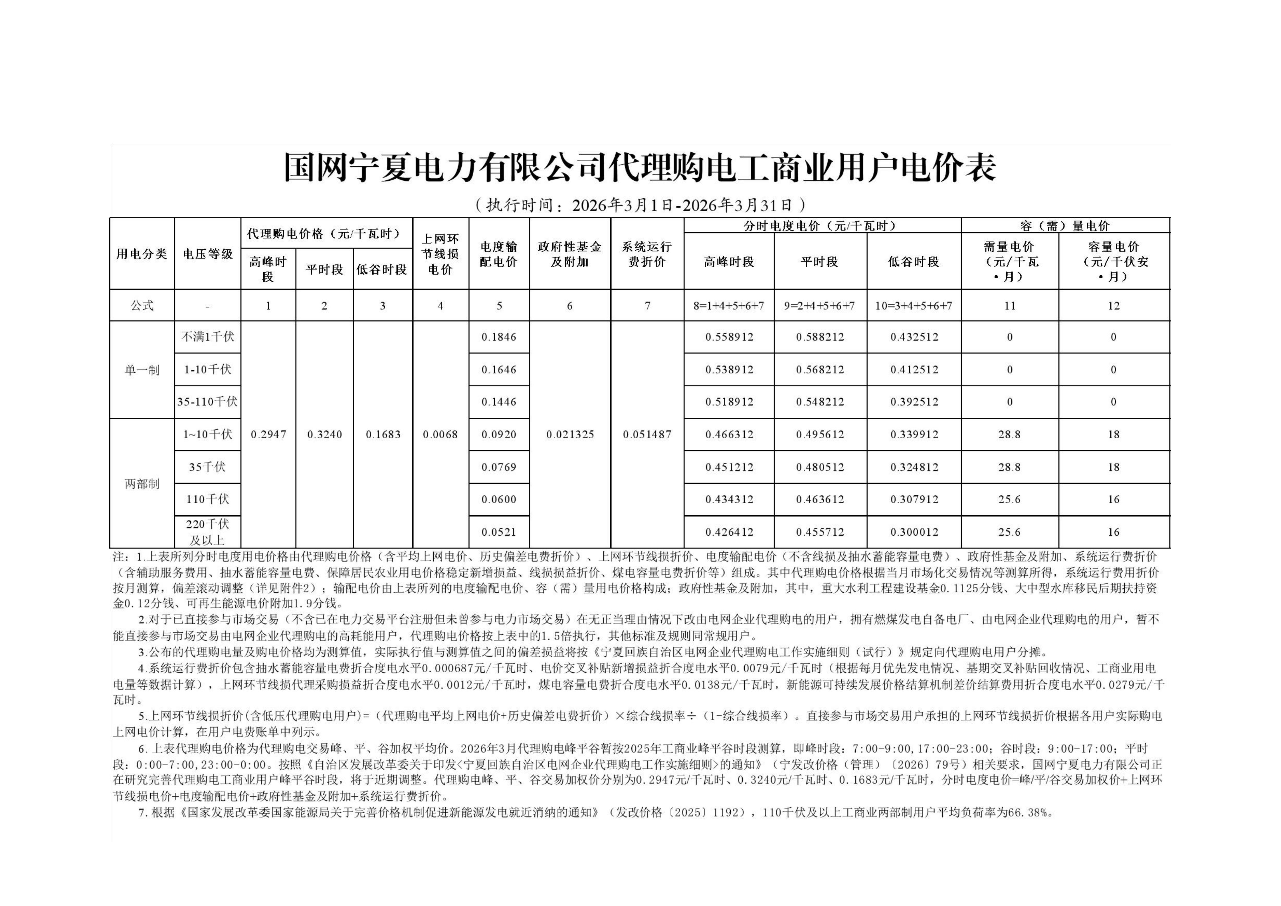宁夏3月工商业电价