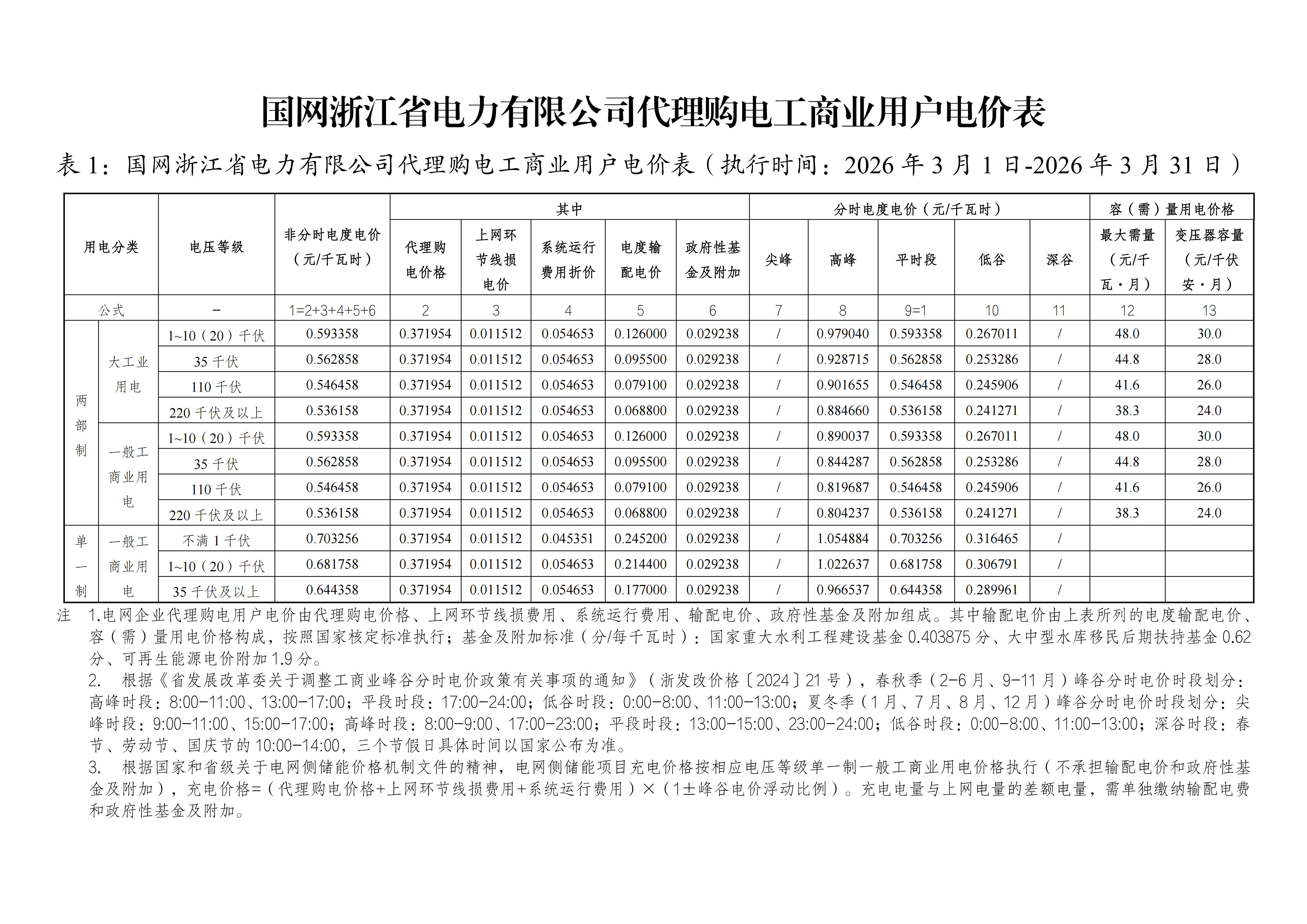 浙江省3月工商业电价