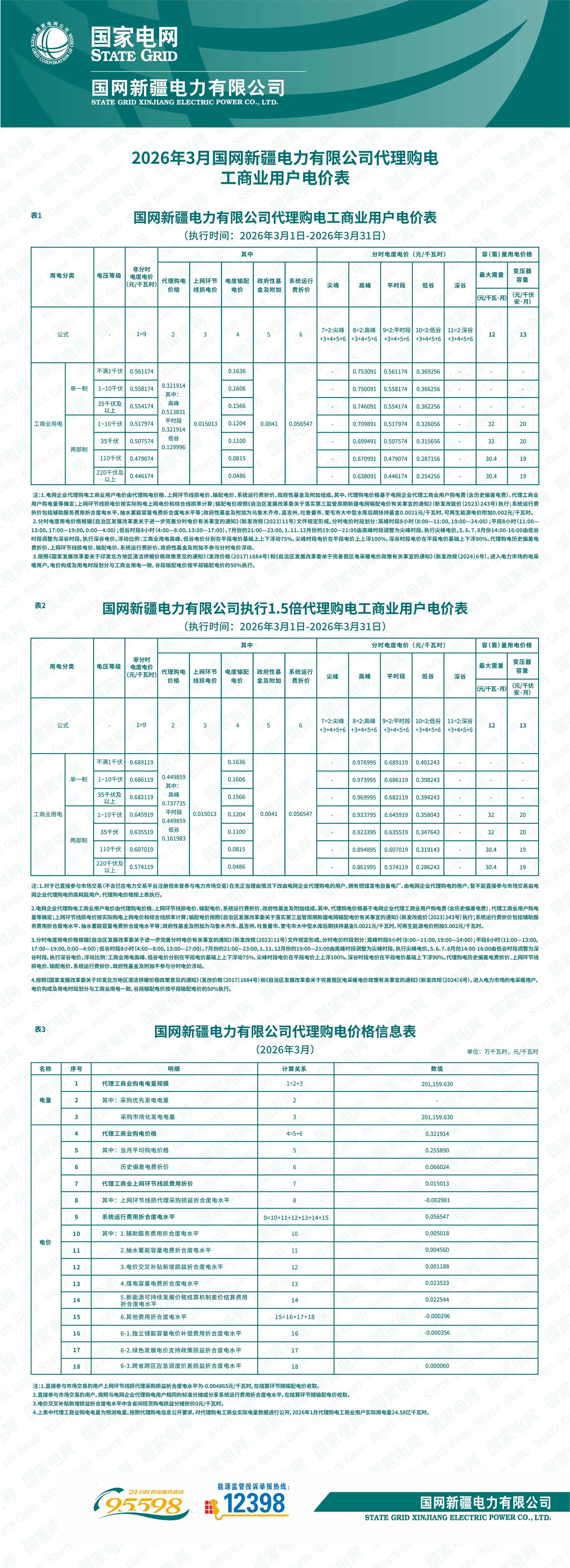 新疆3月工商业电价