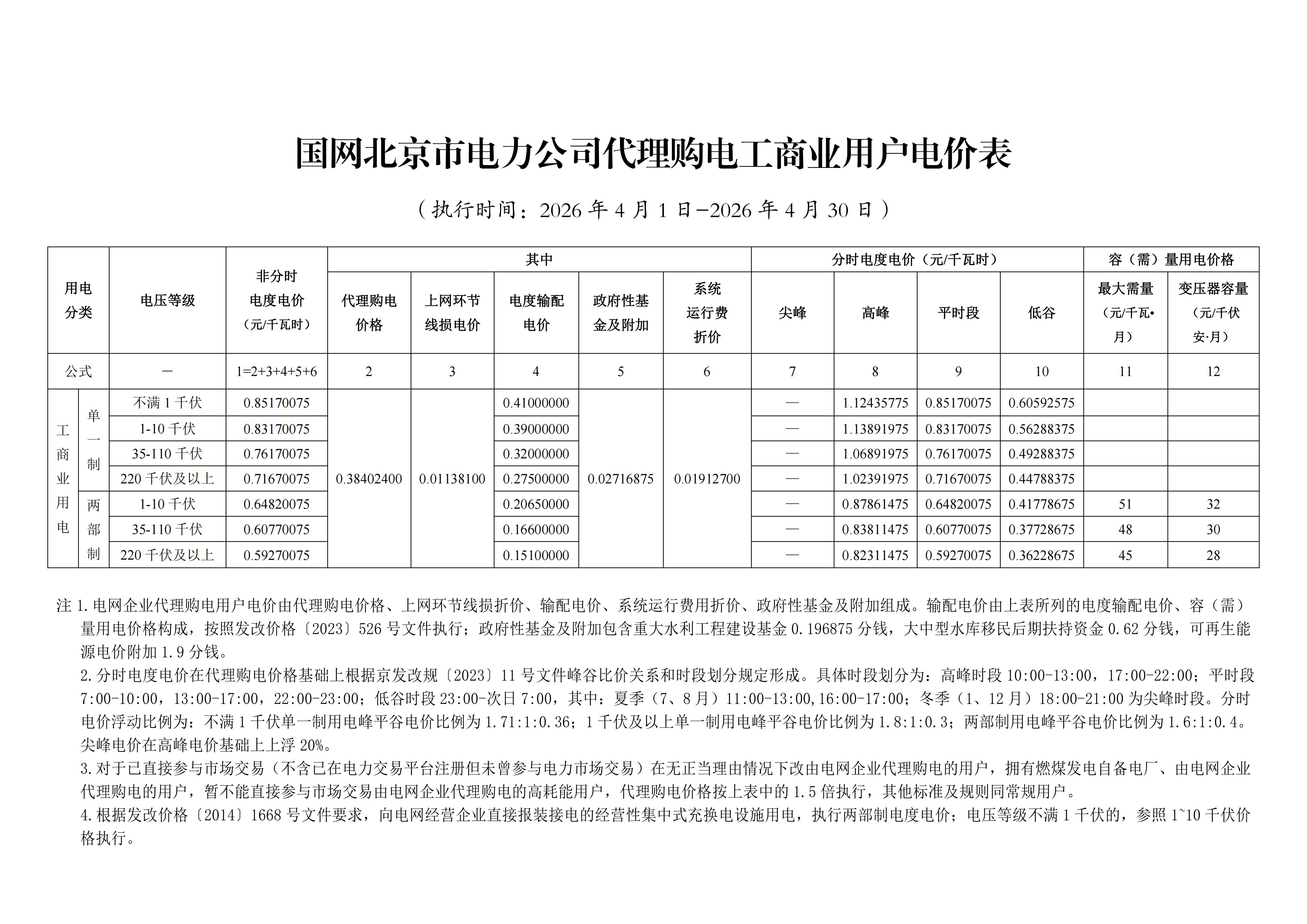 3.北京4月工商业电价