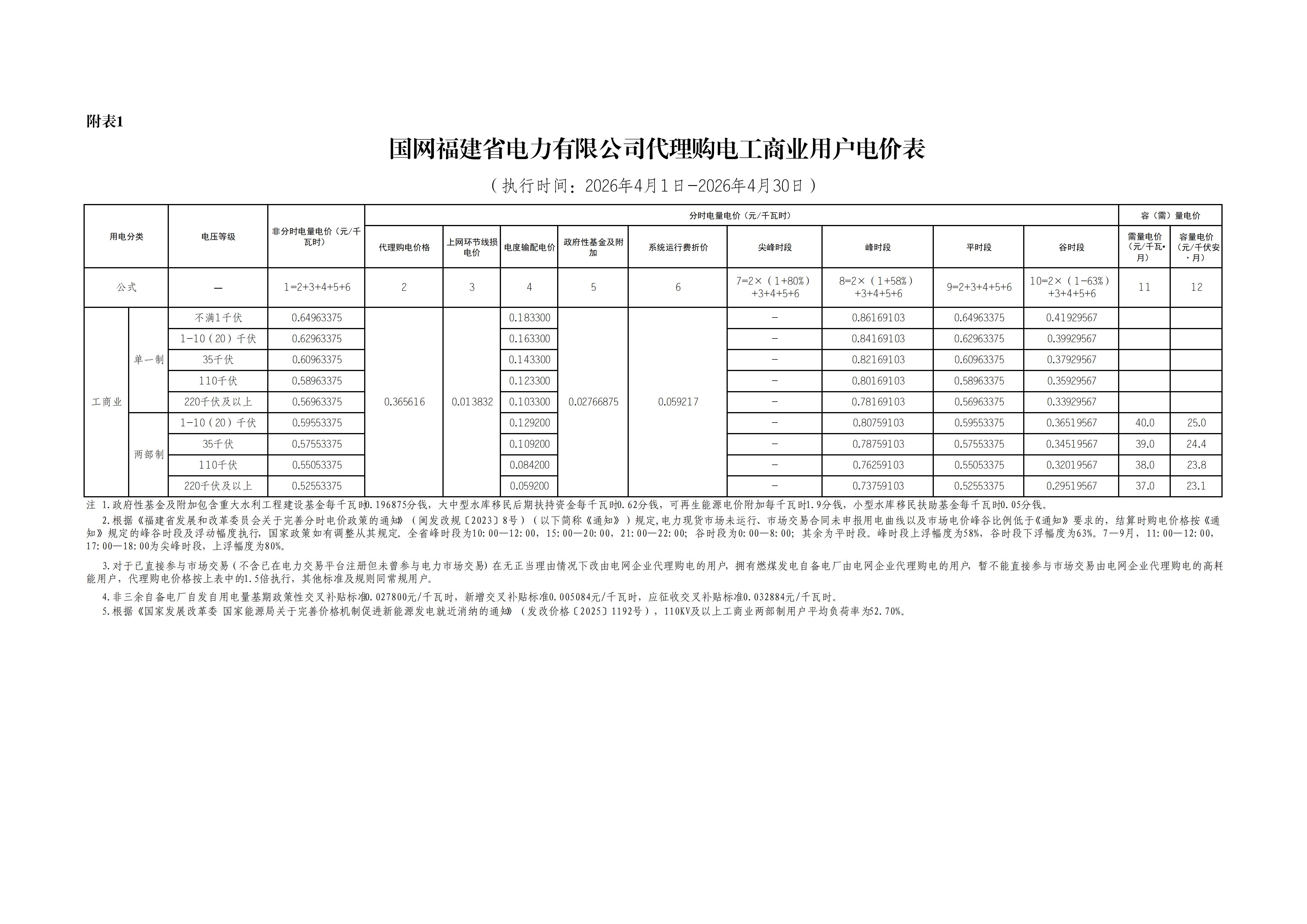 5.福建4月工商业电价