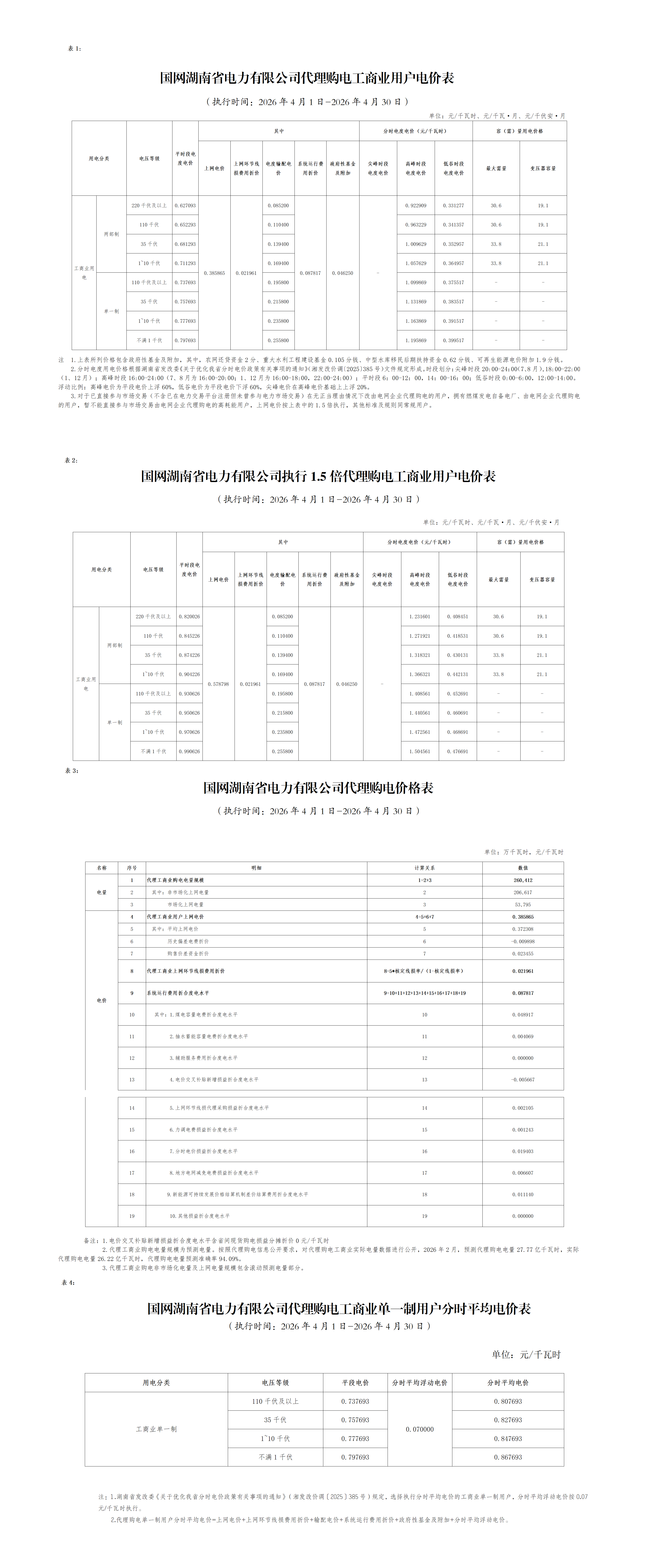 6.湖南省4月工商业电价