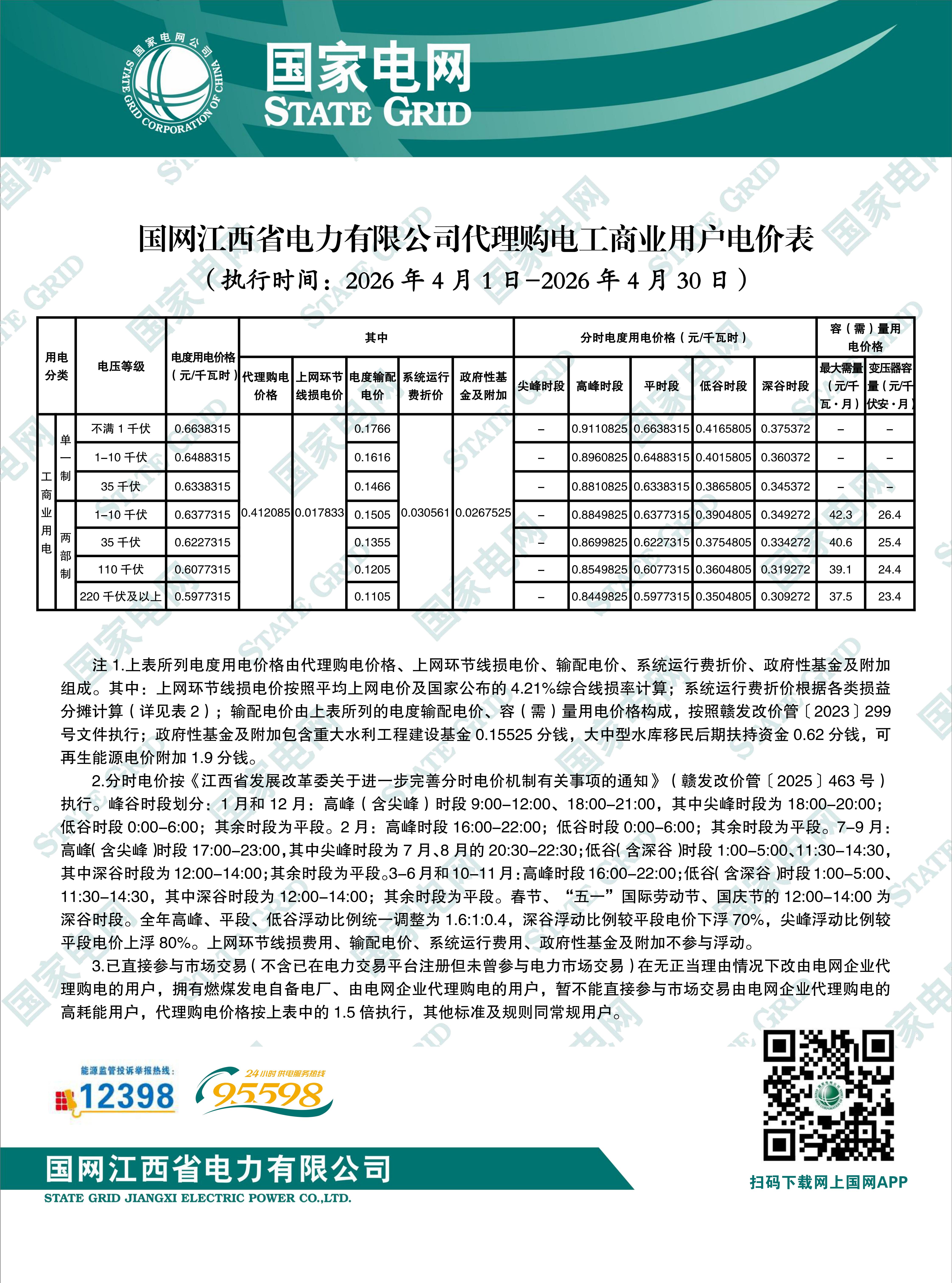 10.江西省4月工商业电价