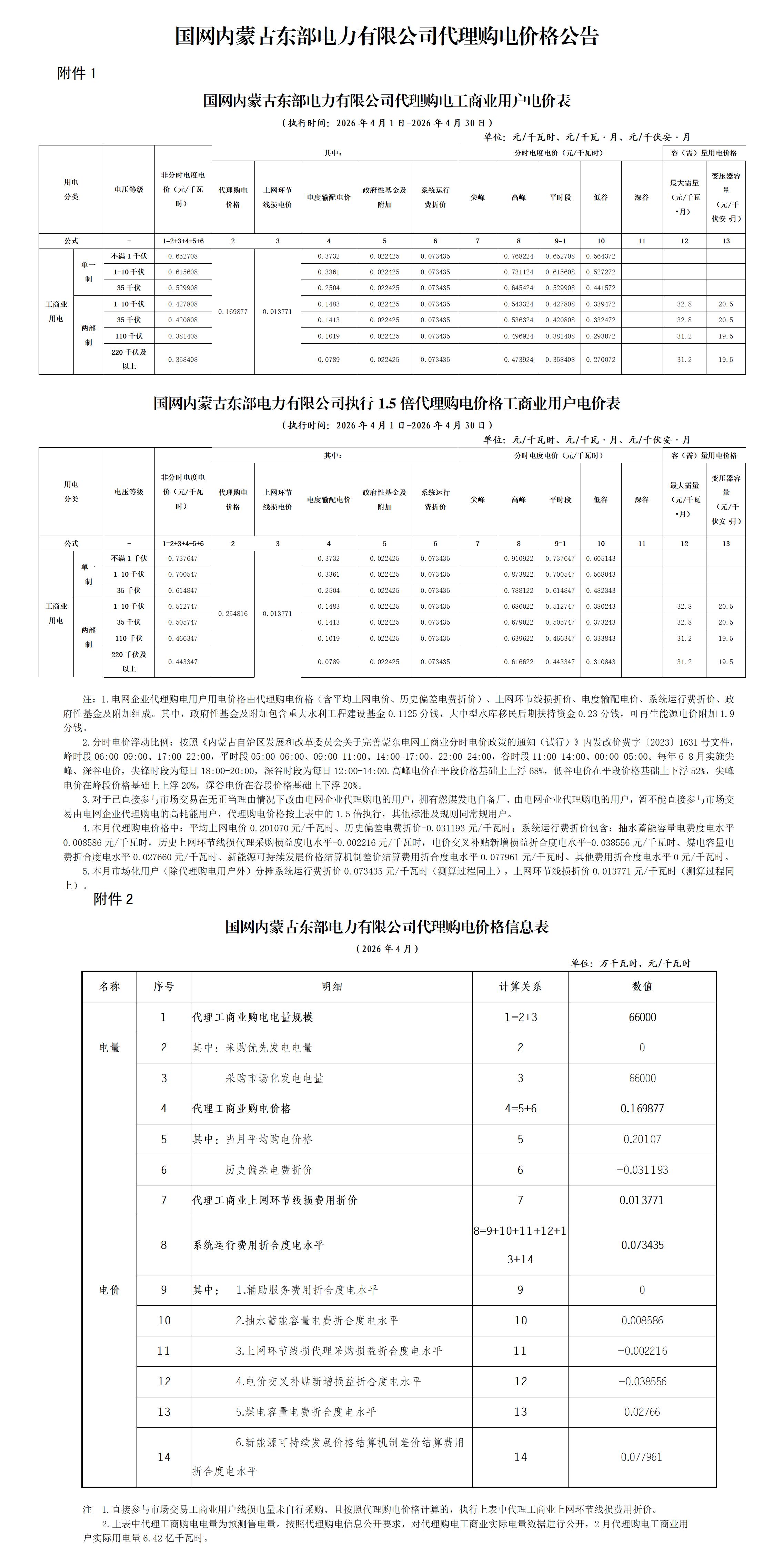 12.内蒙古4月工商业电价