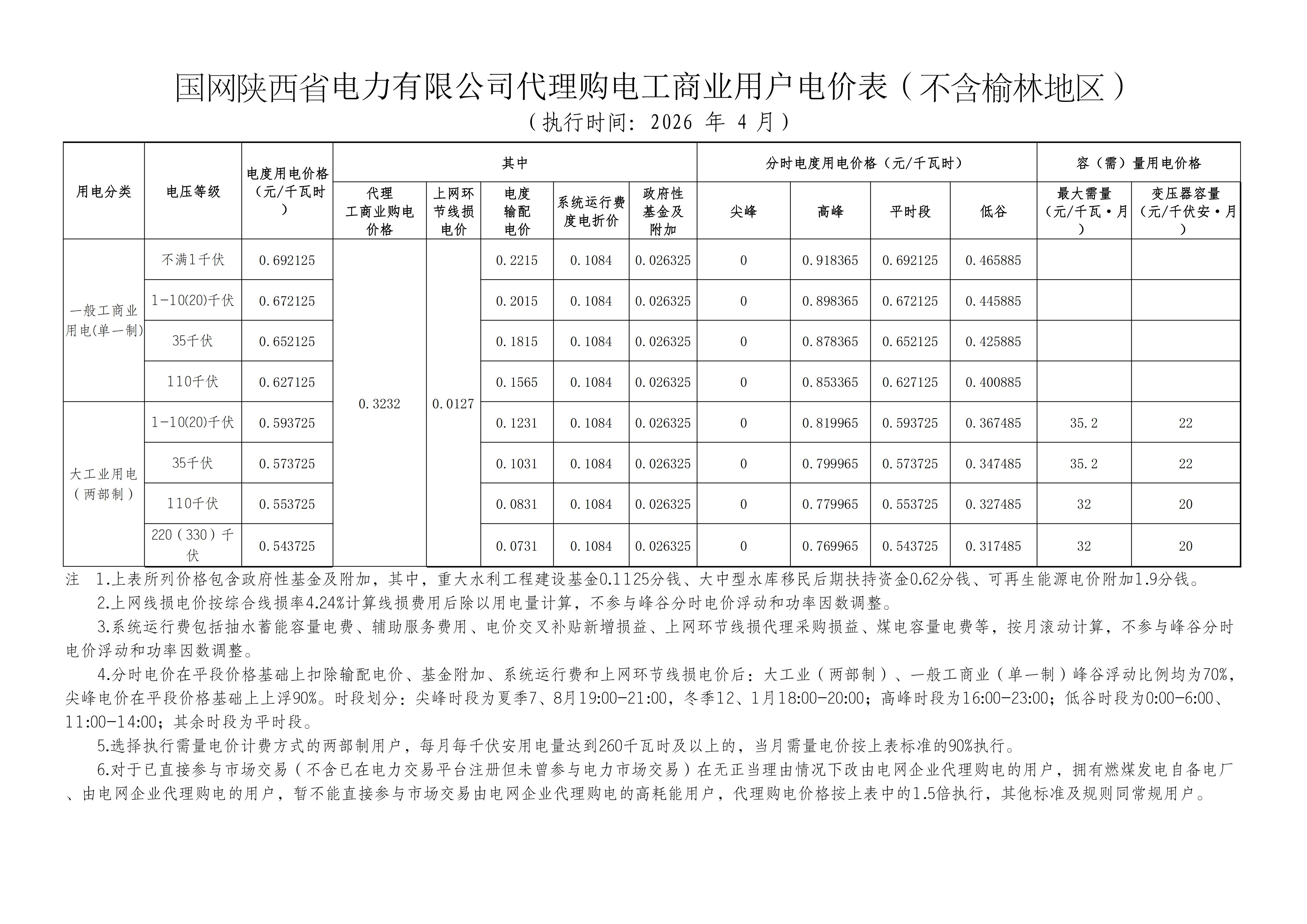 13.陕西省4月工商业电价