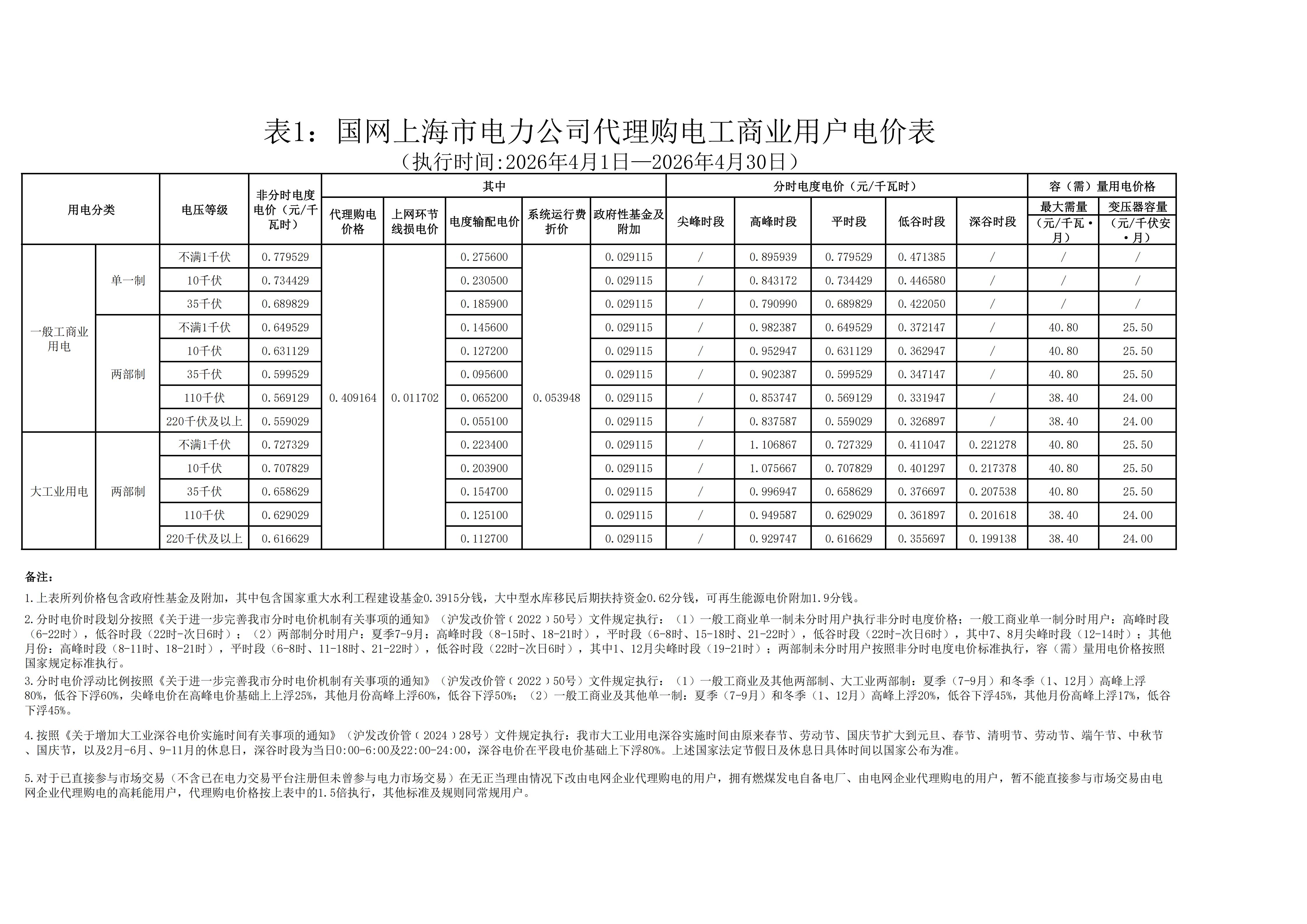 15.上海4月工商业电价