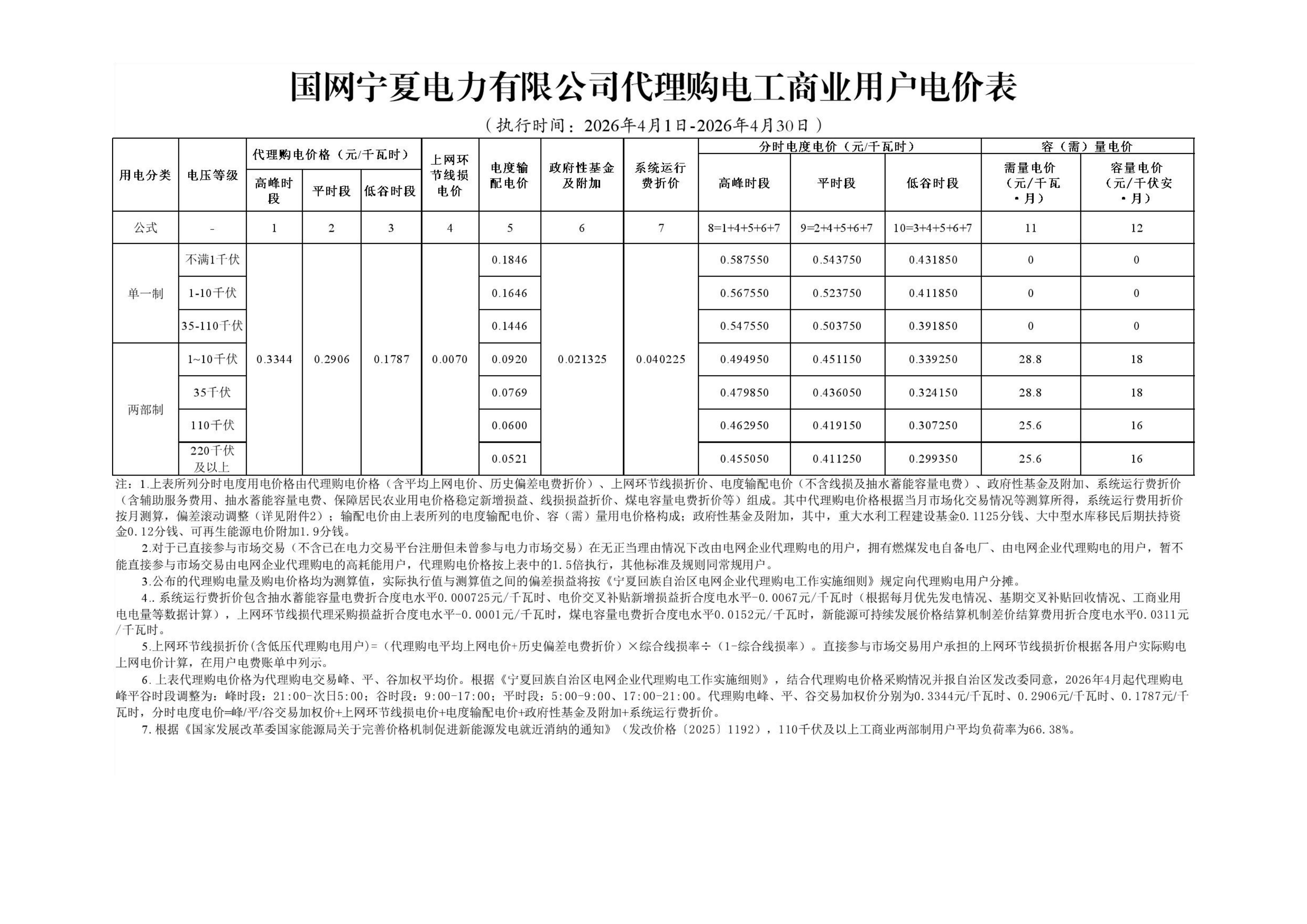 18.宁夏4月工商业电价