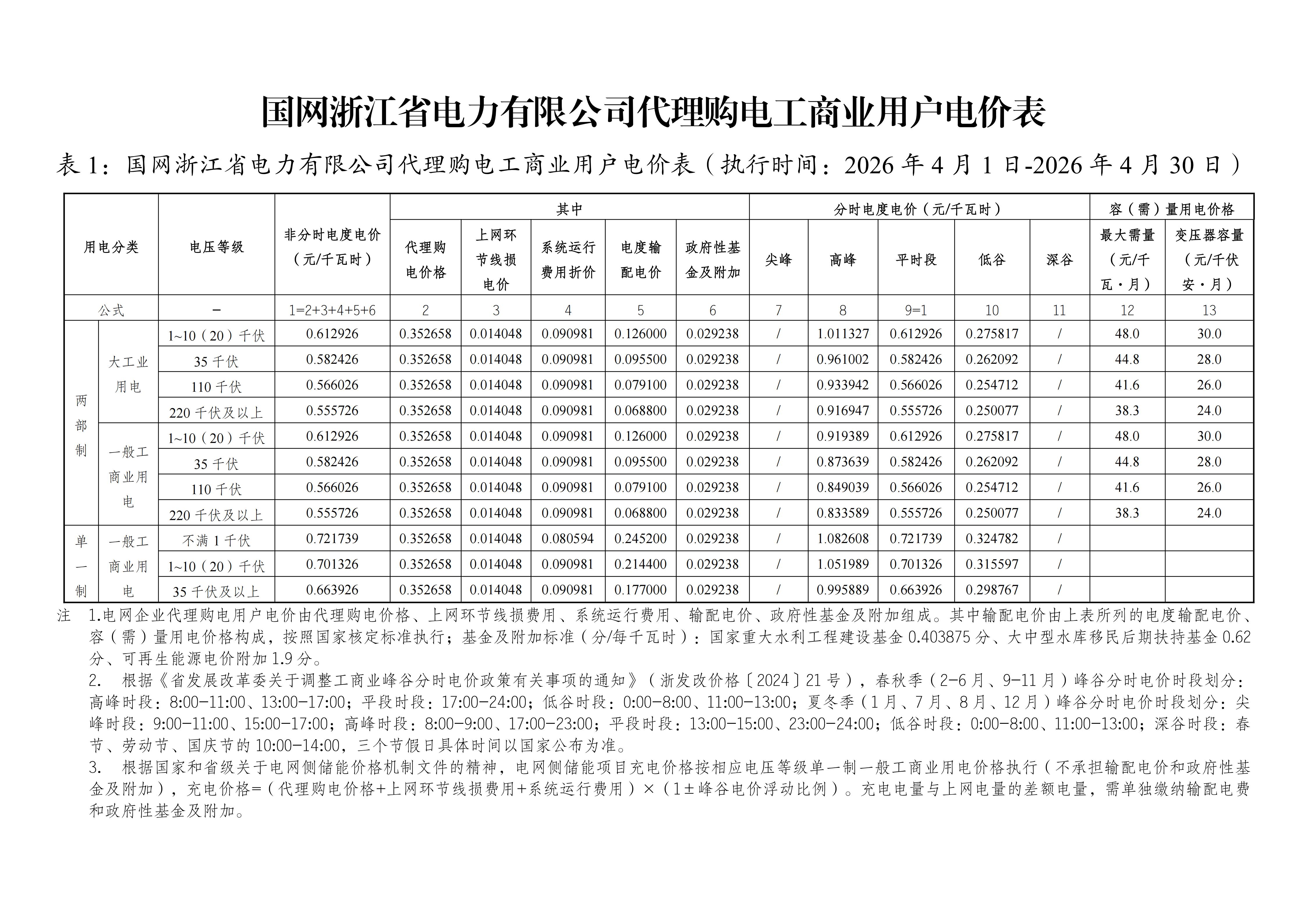 21.浙江省4月工商业电价