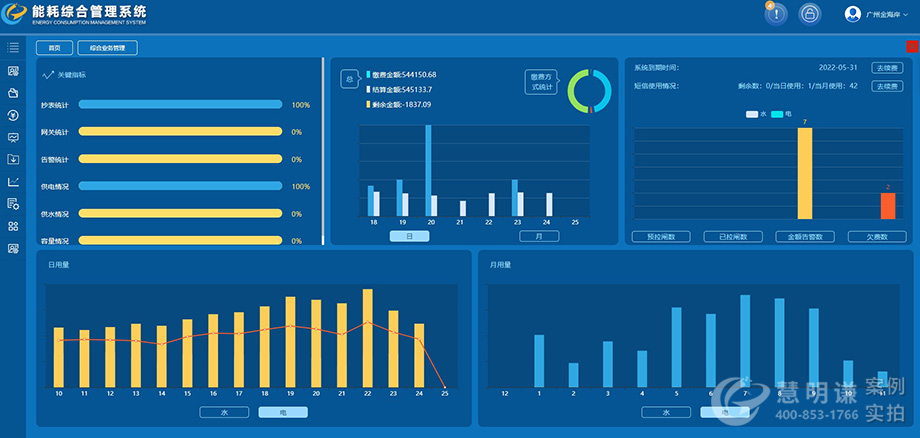所采用的抄表系统为慧明谦自主研发的预付费能耗抄表管理系统,它具有远程抄表、异常告警、超功率监控、控制开合闸以及通过线上或者手机缴费等功能。