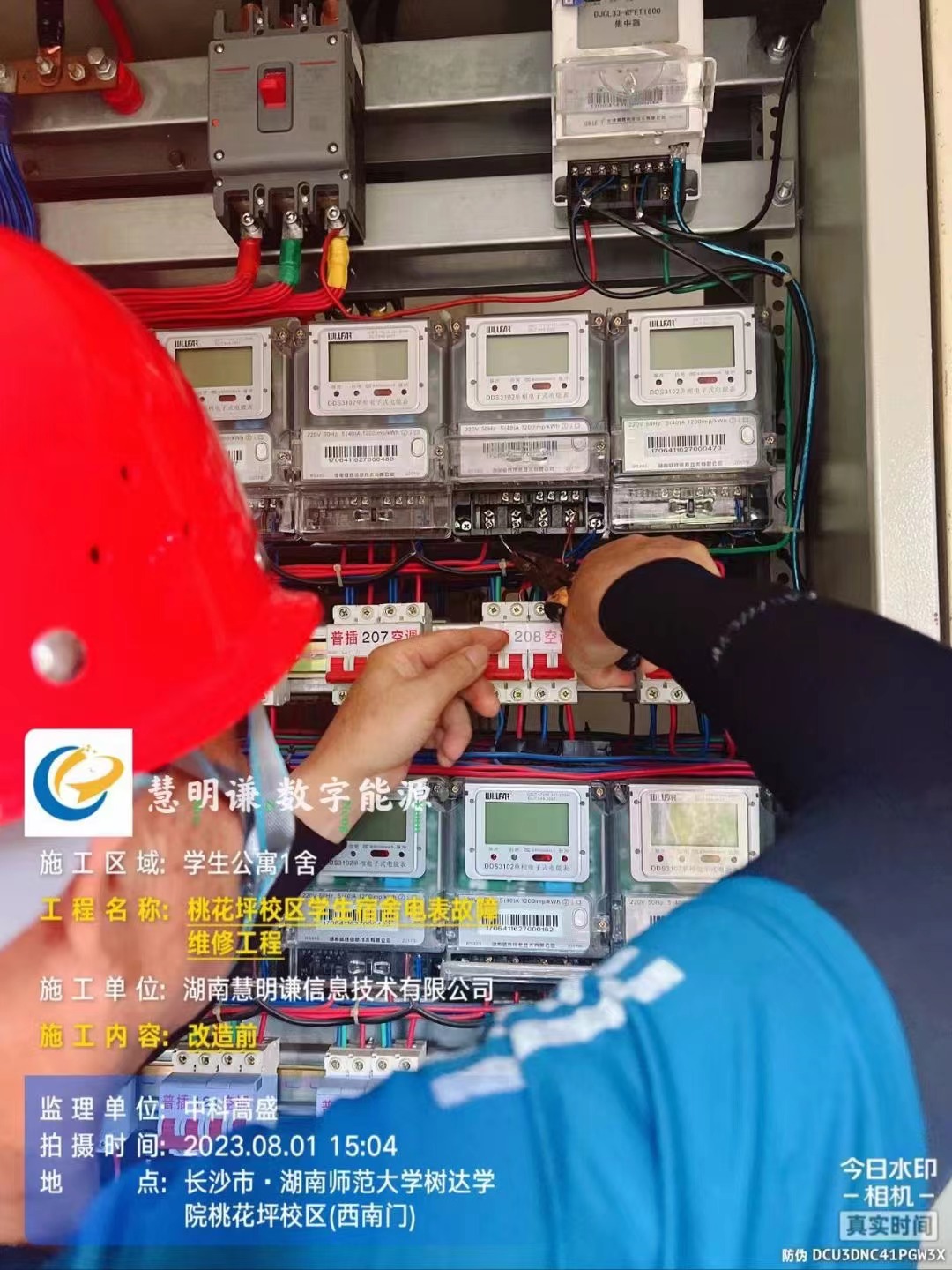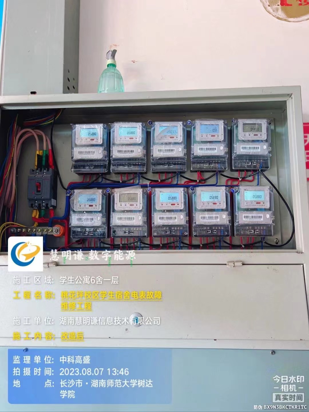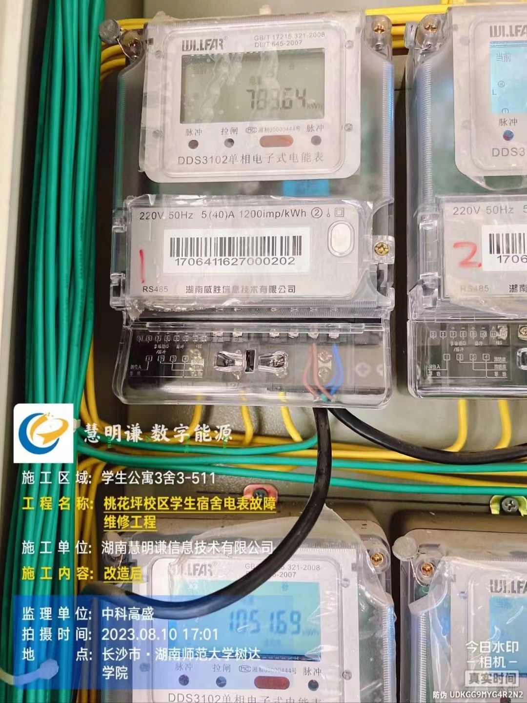 项目改造后效果:配合慧明谦远程抄表预付费管理系统,实现了对学生宿舍用电的智能化管理,采用双回路智能电表,空调和插座、照明分开计量和控制,并可随时监控宿舍大功率电器的使用(恶性负载识别),远程定时自动通断电;学校对学生用电进行批量的电费补助,无需手工计算和做账;手机可随时缴费,避免了学生晚上停电无法缴费复电的不便。