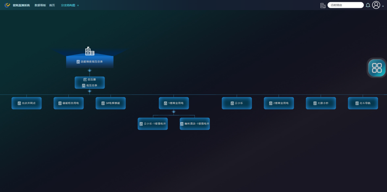 2) 构建能源拓扑图,实现能源结构电子化与可视化,监测能源流向,实时监测各级能耗情况;