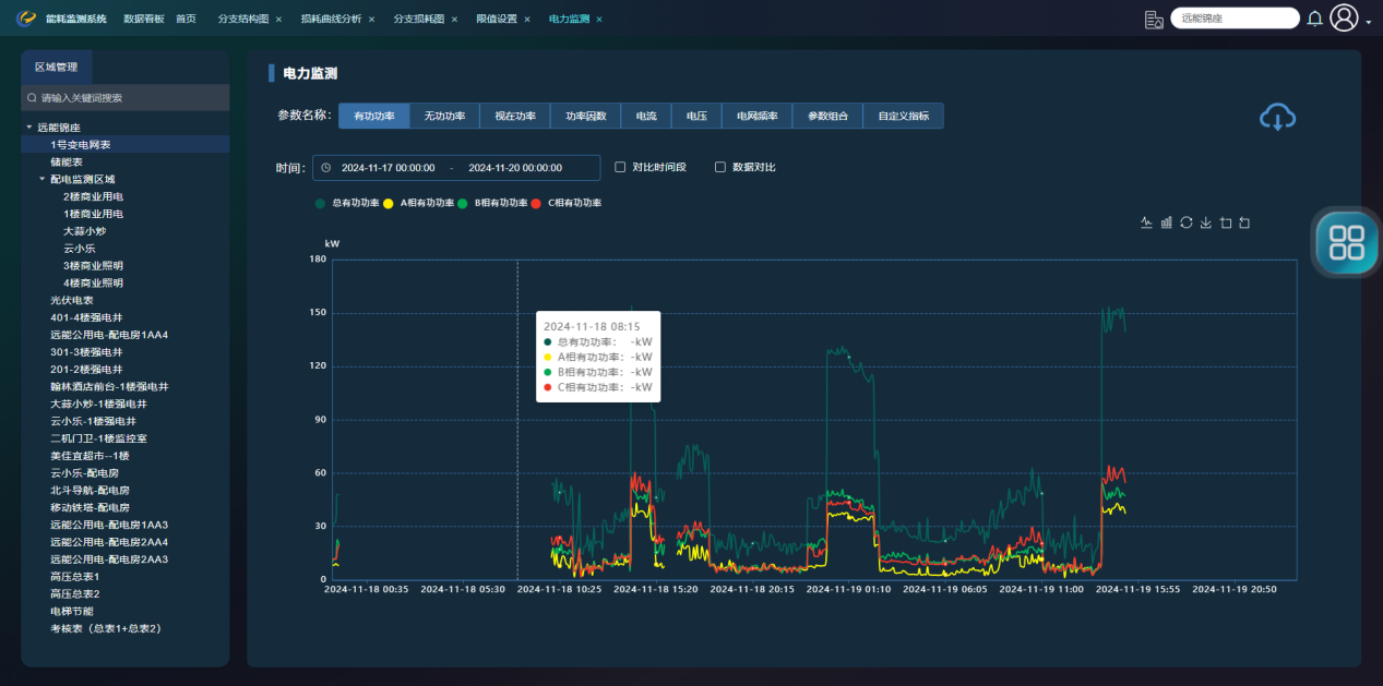 3) 根据能源拓扑图,构建损耗拓扑图,自动计算各级损耗,做小时级的损耗分析;