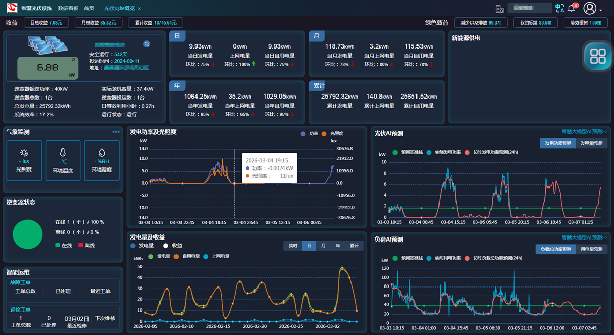 2.智能分析与预警:系统结合历史、气象和设备数据,预测运行趋势,识别故障风险,具备自动化故障报警功能,可及时通知运维人员处理异常。