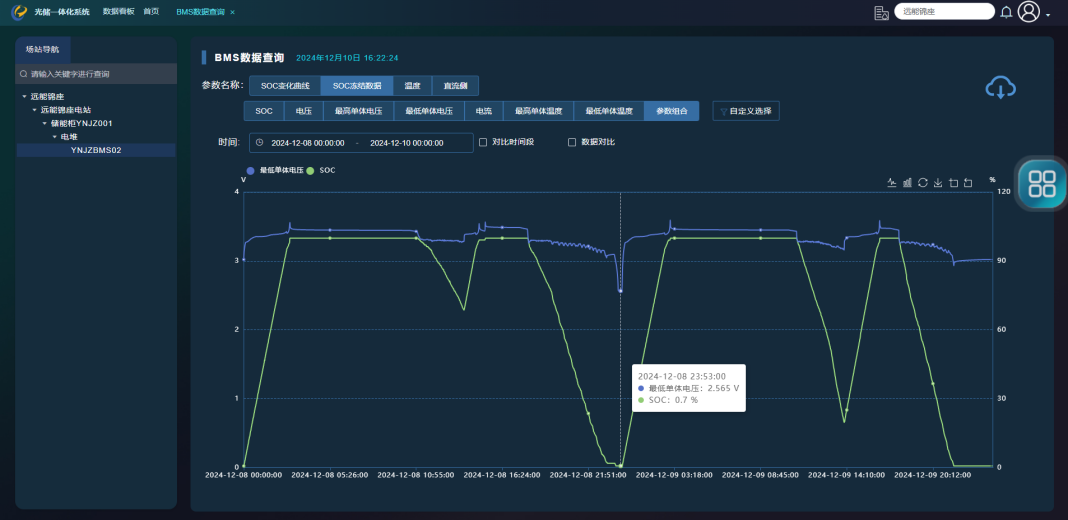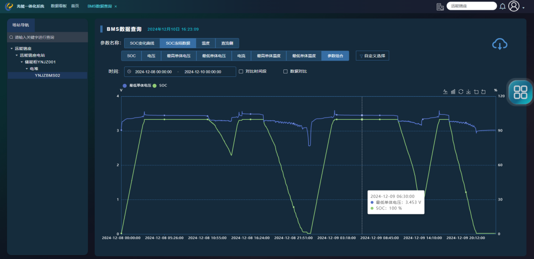 柔性充放电控制算法:针对储能柜电芯单体电压与SOC情况,主动控制脉冲式充放电,精准柔性控制SOC充电到100%时单体电压3.5V左右,放电到1%以下,单体电压2.95-3.0V左右,做到满充满放,不损坏电池,提高储能柜整体使用效率,我们的目的是能将储能利用率提高5%,并保持电池单体电压的一致性。