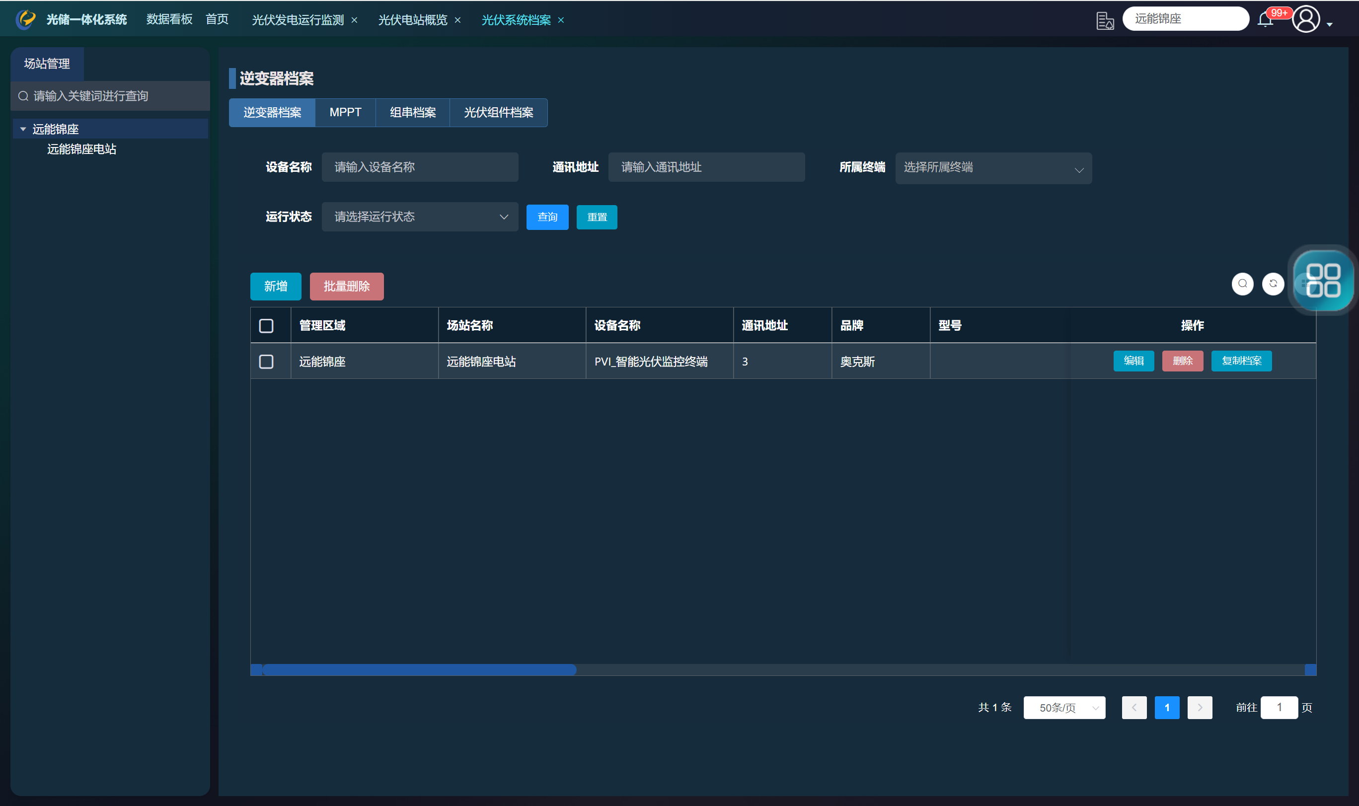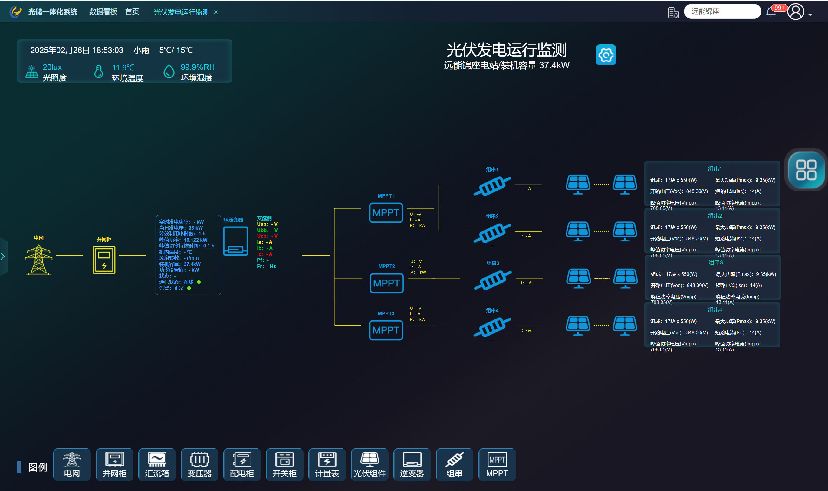 由于光伏发电受天气条件和昼夜变化的影响较大,其发电量具有一定的不稳定性。光伏运维管理系统能够实时监控光伏电站的发电数据并根据天气大数据情况做短时及长时的发电预测,将这些数据与配电系统的需求结合起来,帮助电力调度中心进行合理的负荷预测和电网调度,避免因光伏发电波动造成的电网压力。