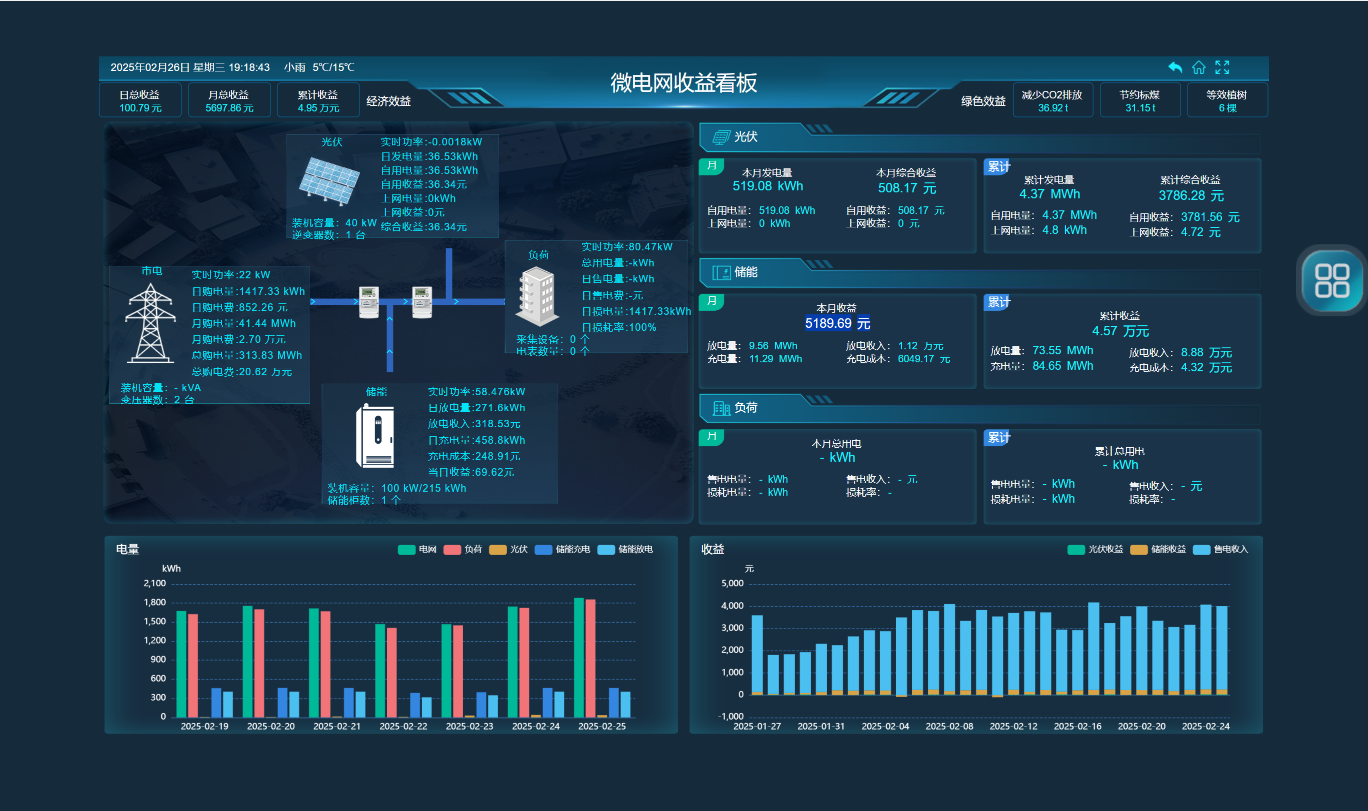 根据用电量预测与发电量预测及上网电量的情况,系统能自动分析储能投资情况;