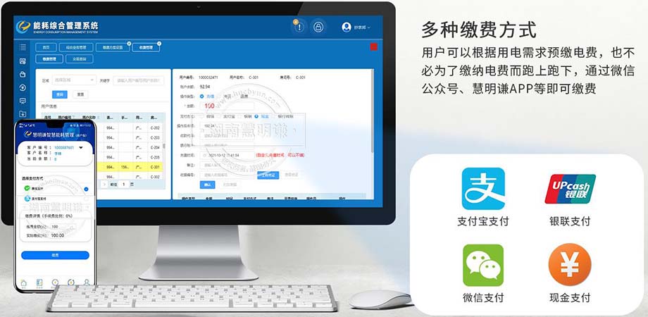 3、多种缴费方式:用户可以根据用电需求预缴电费,也不必为了缴纳电费而跑上跑下,通过微信公众号、慧明谦APP等即可缴费。