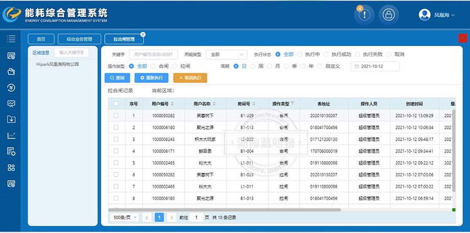 4、拉合闸管理:当系统结算时,用户账户余额不足,系统会自动拉闸断电,只有用户缴费之后,系统会自动合闸来电,也可手动拉合闸操作。