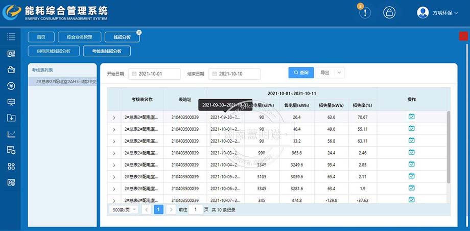 9、损耗分析:可自定义台区、片区统计损耗,对线损产生的原因进行合理分析,从管理和技术方面采取针对性的降损措施。