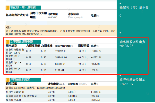 供电部门给用户供了1度电,用户因为用电设备等问题,功率因数为0.7,即只产生了0.7度有功电量,另外的0.3度电是无功功率产生的损耗,供电部门为了减少损耗、改善电网供电质量,会对用户的功率因数进行考核,即力调(tiáo)电费,我们看这个工商业电费单,用户实际的功率因素高于考核标准,电费奖励了六千多