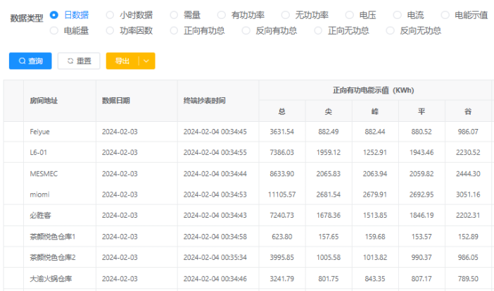 智能电表基本都具备了冻结功能,比如我们家用的单相智能电表,就有日冻结功能,电表每天0点会自动冻结总电量数据,相当于电表本身有个日用电量的报表,通过抄表系统就可以抄读到电表每天的冻结电量数据,从而计算出用户每天用多少电、产生多少电费,我们看下系统抄读到的电表日冻结数据报表及日能耗报表。