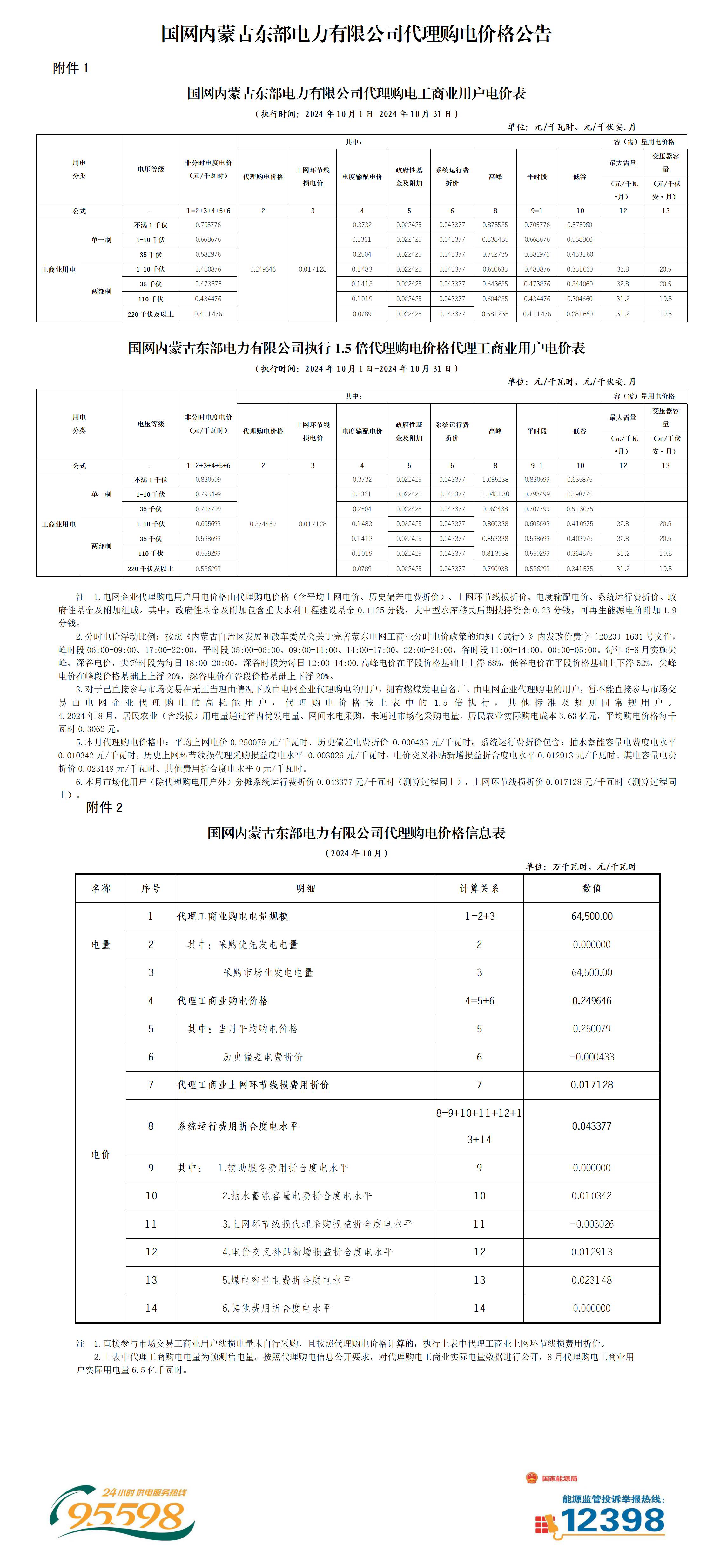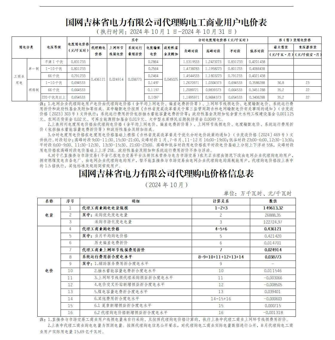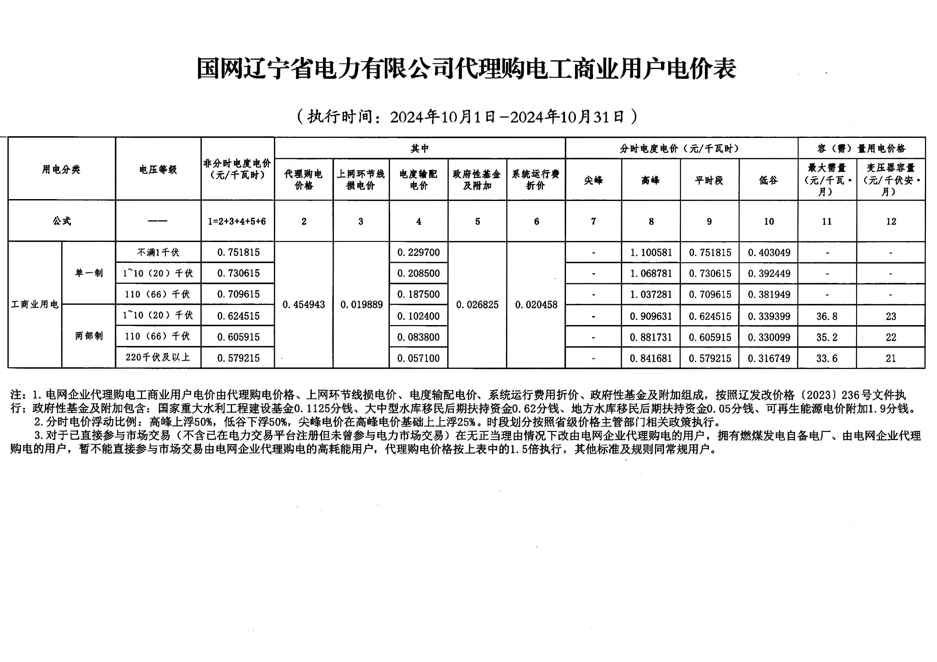 2024年10月份各省工商业电价(黑龙江、吉林、辽宁、内蒙古(蒙东))
