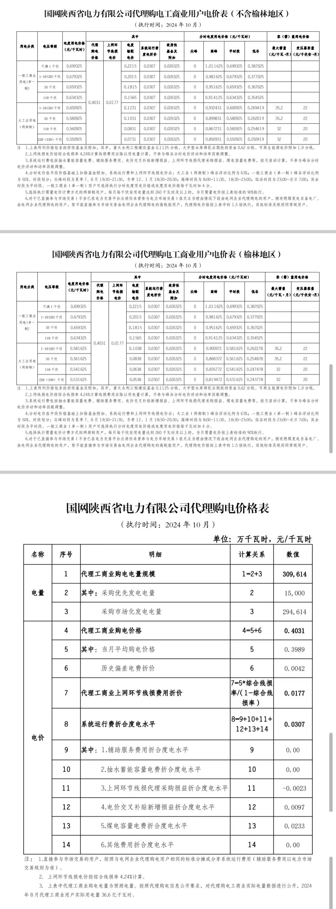 2024年10月份各省工商业电价(陕西、甘肃、宁夏、青海、新疆)