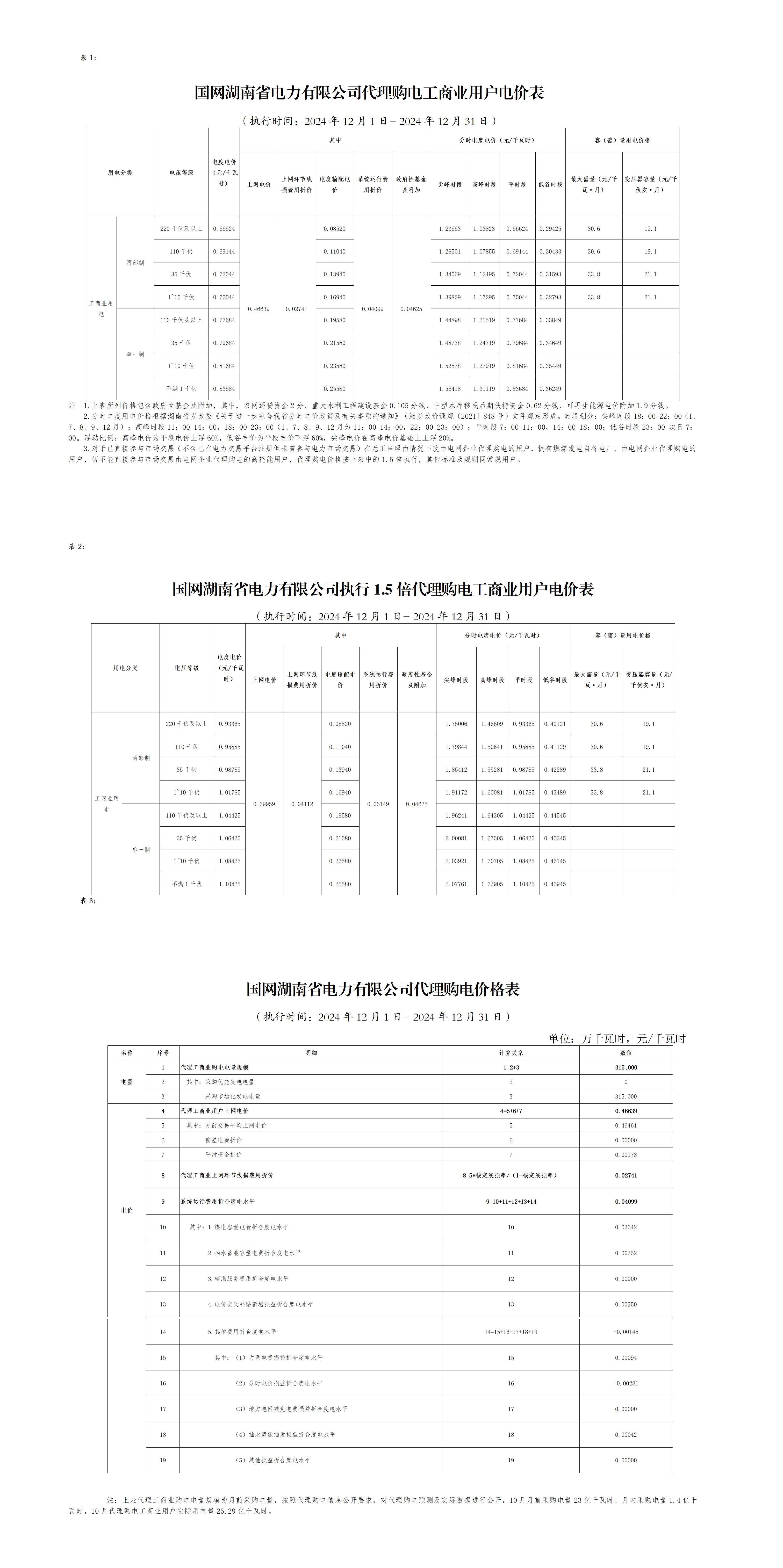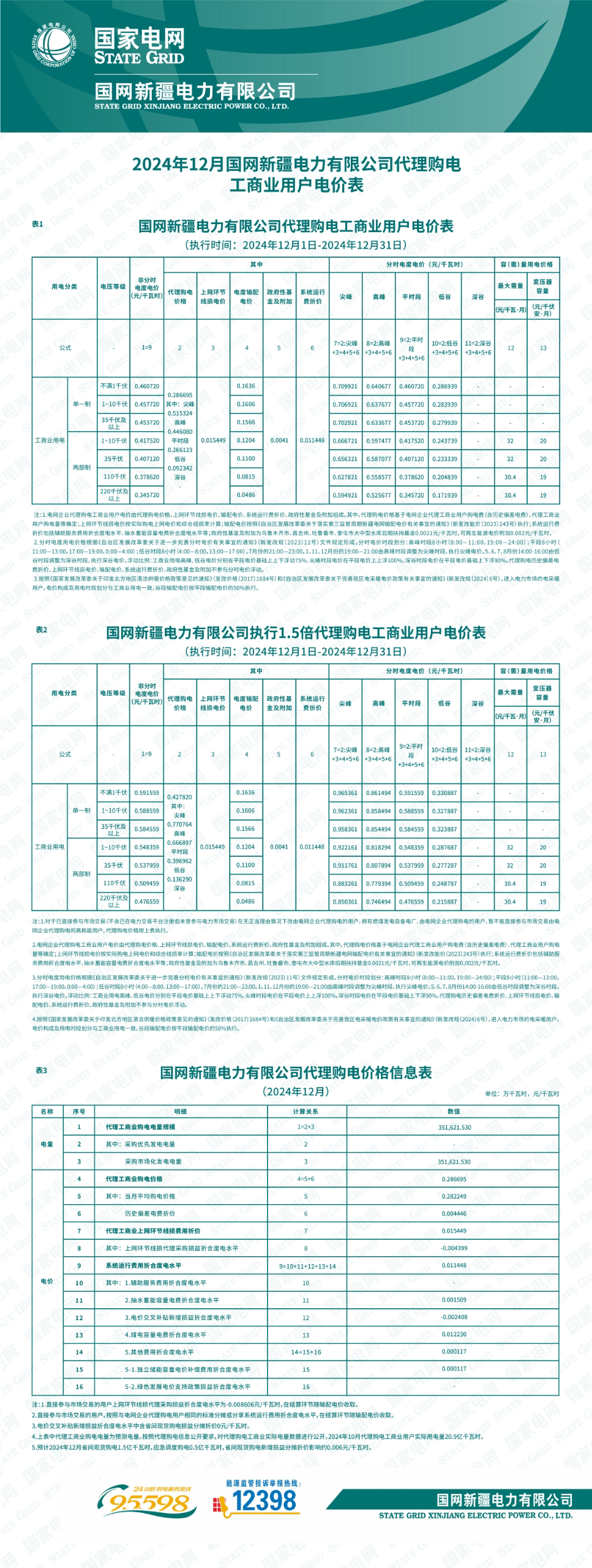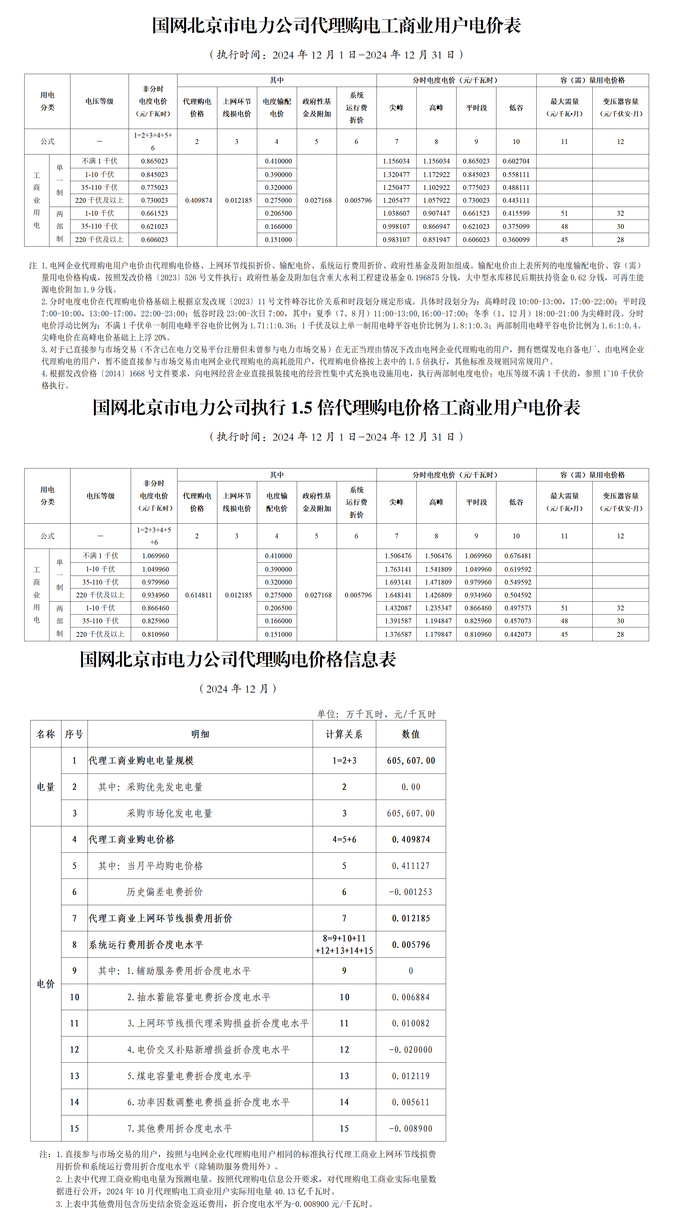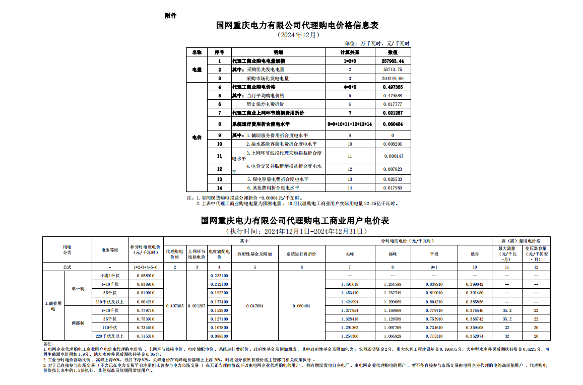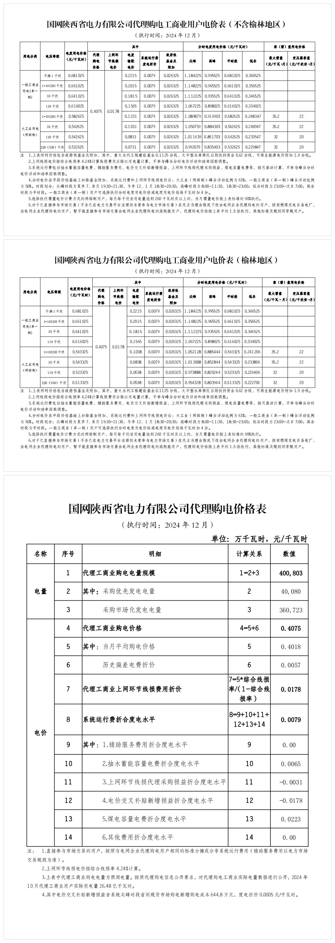 内蒙古(蒙东)12月份代理购电工商业用户电价表