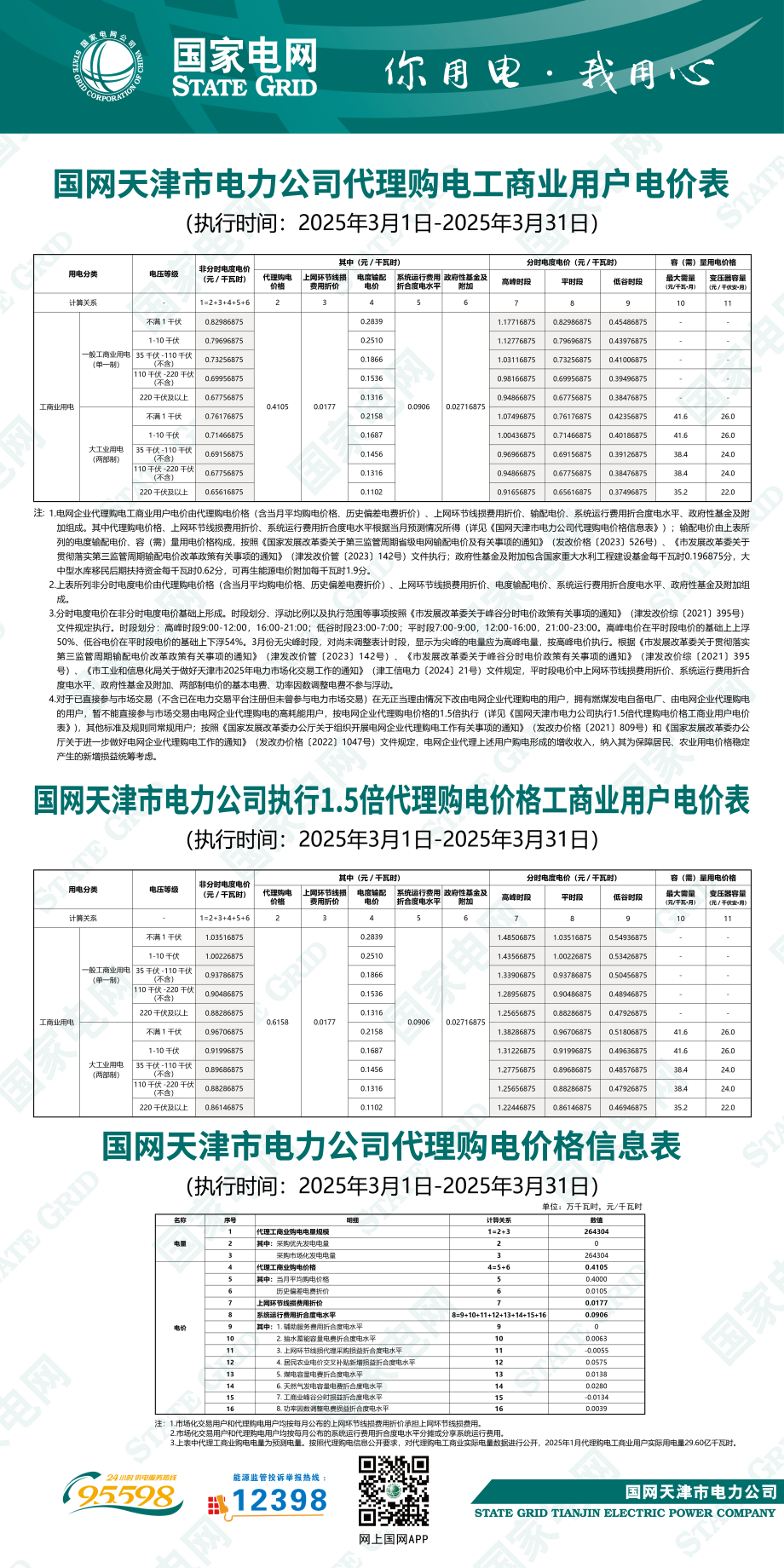天津市3月份代理购电工商业用户电价表