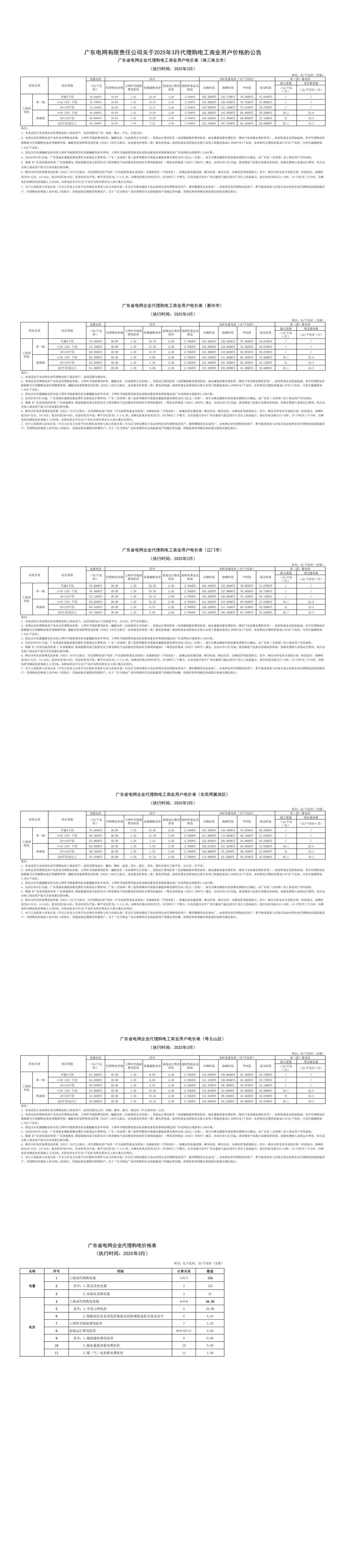 广东省3月份代理购电工商业用户电价表