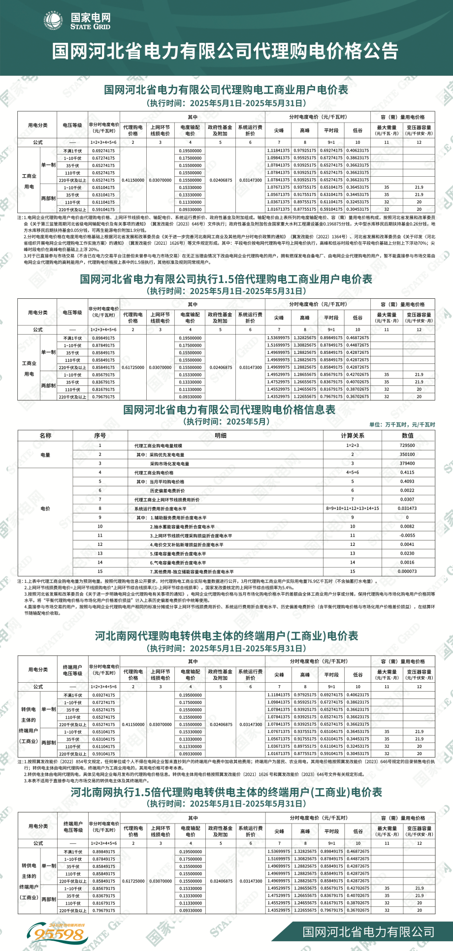 河北省5月份代理购电工商业用户电价表