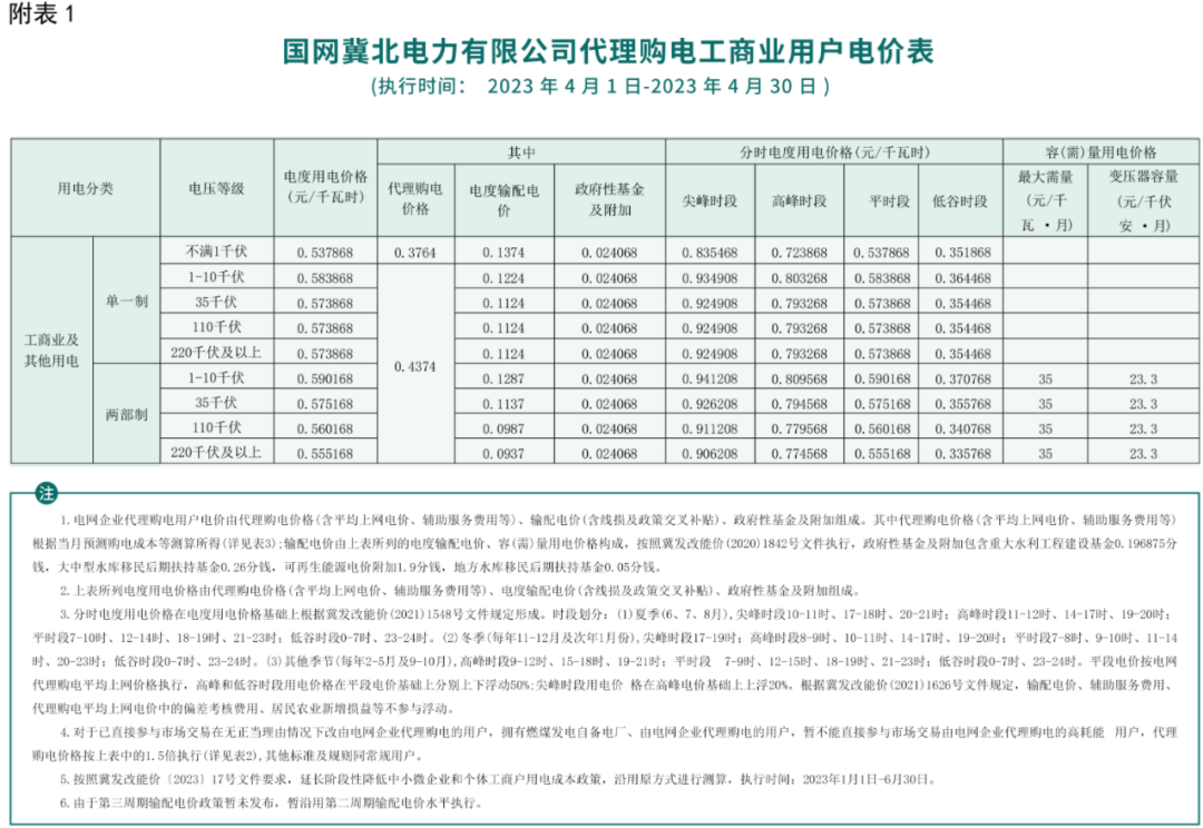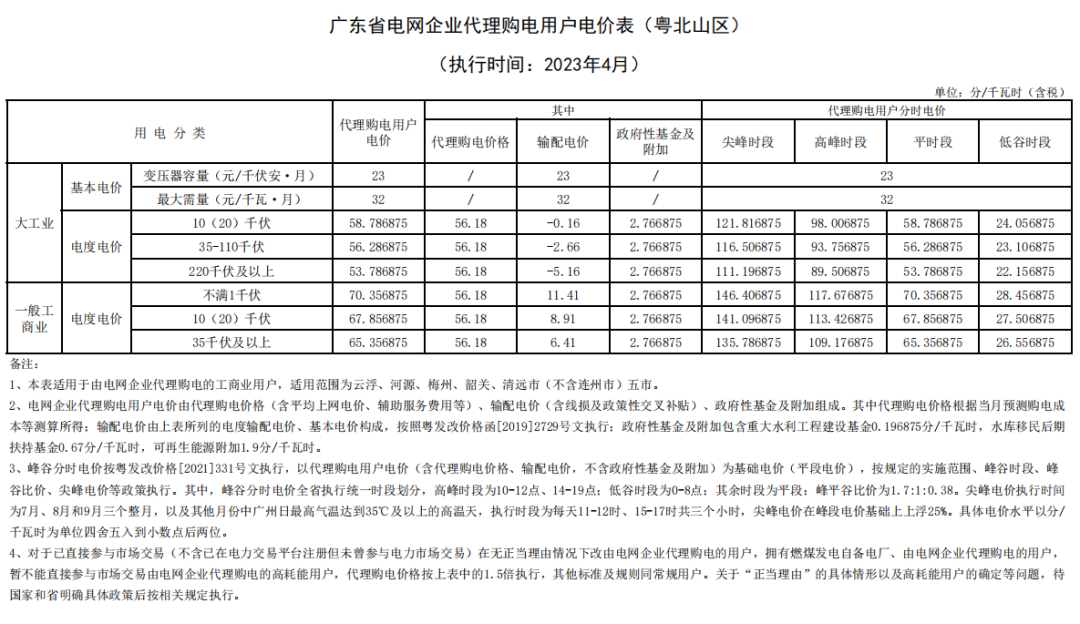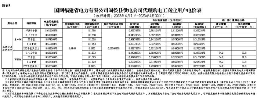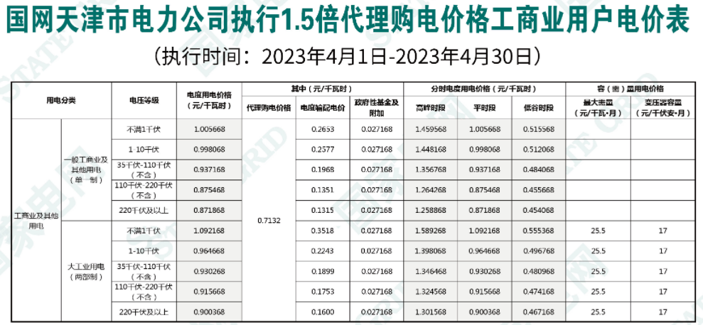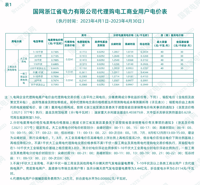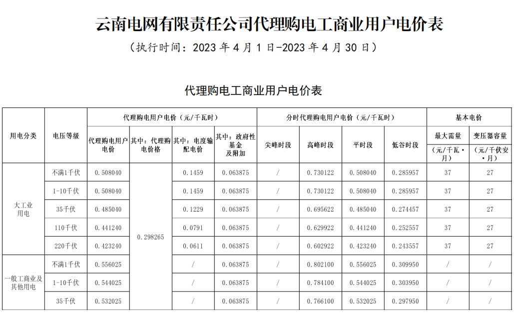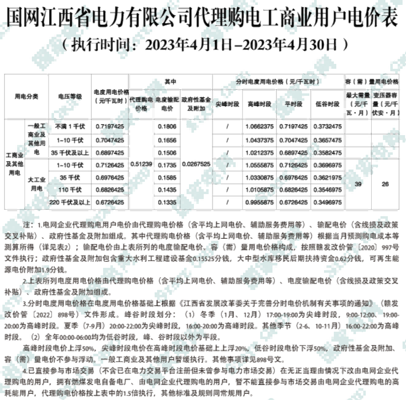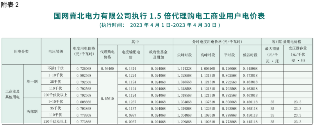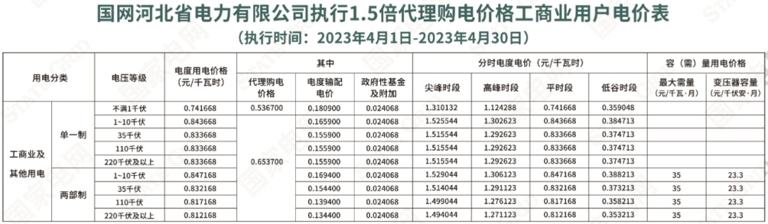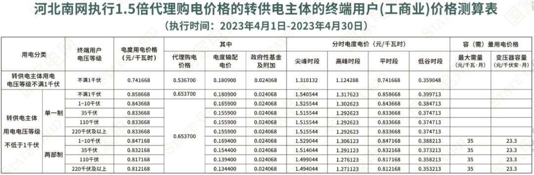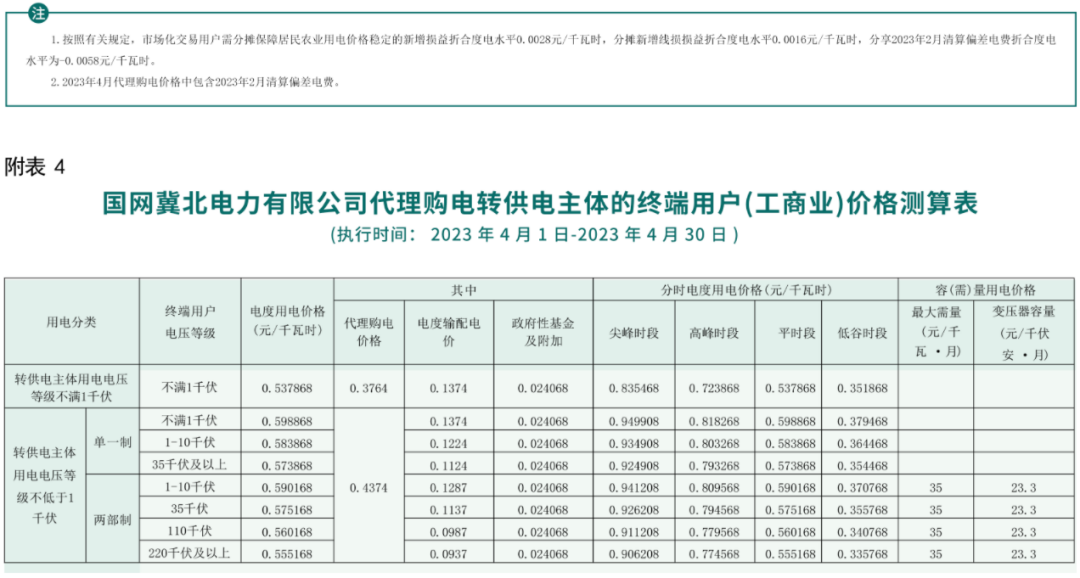 2023年4月各省代理购电价格汇总(工商业用户)