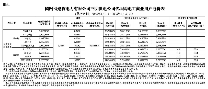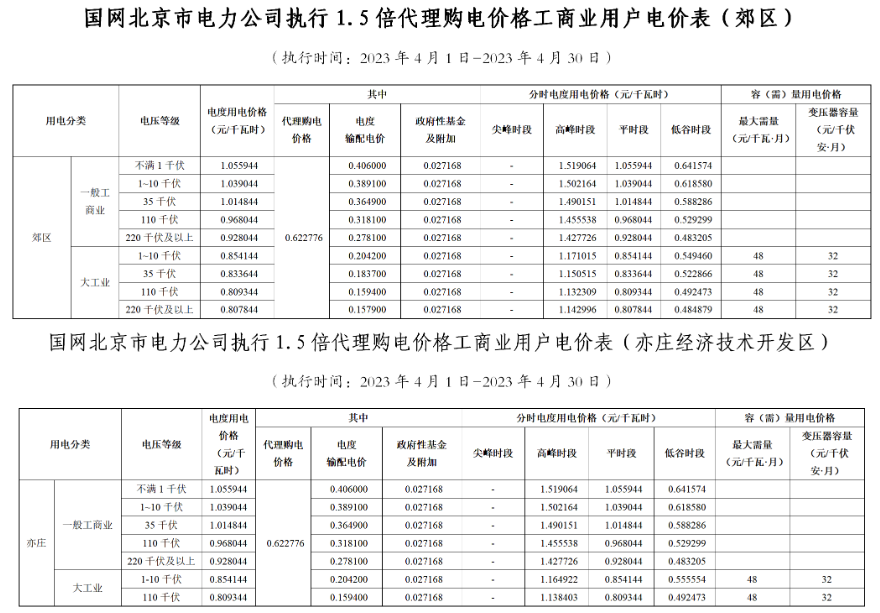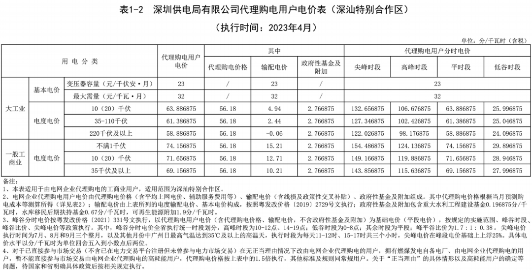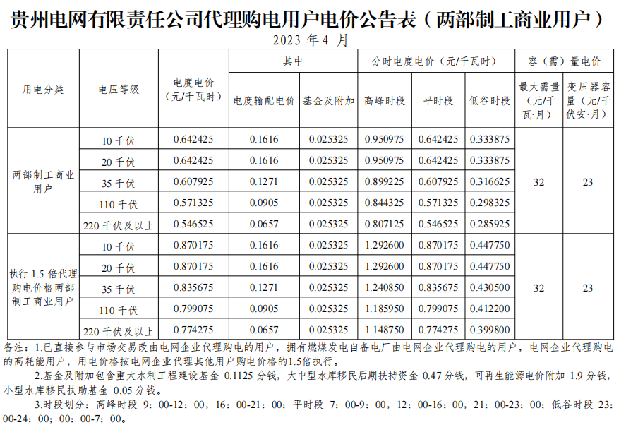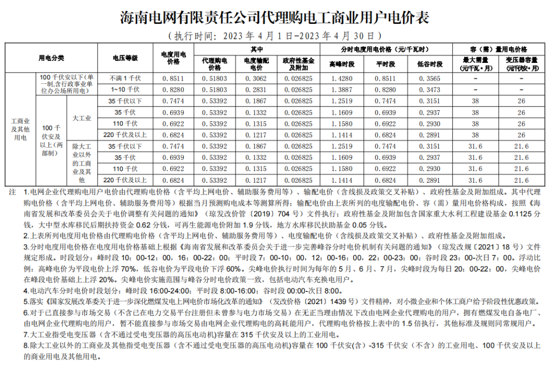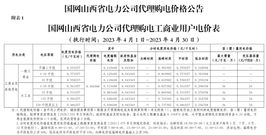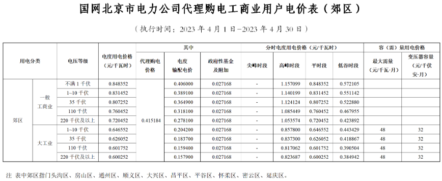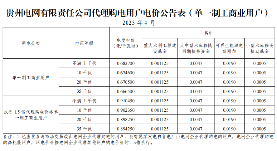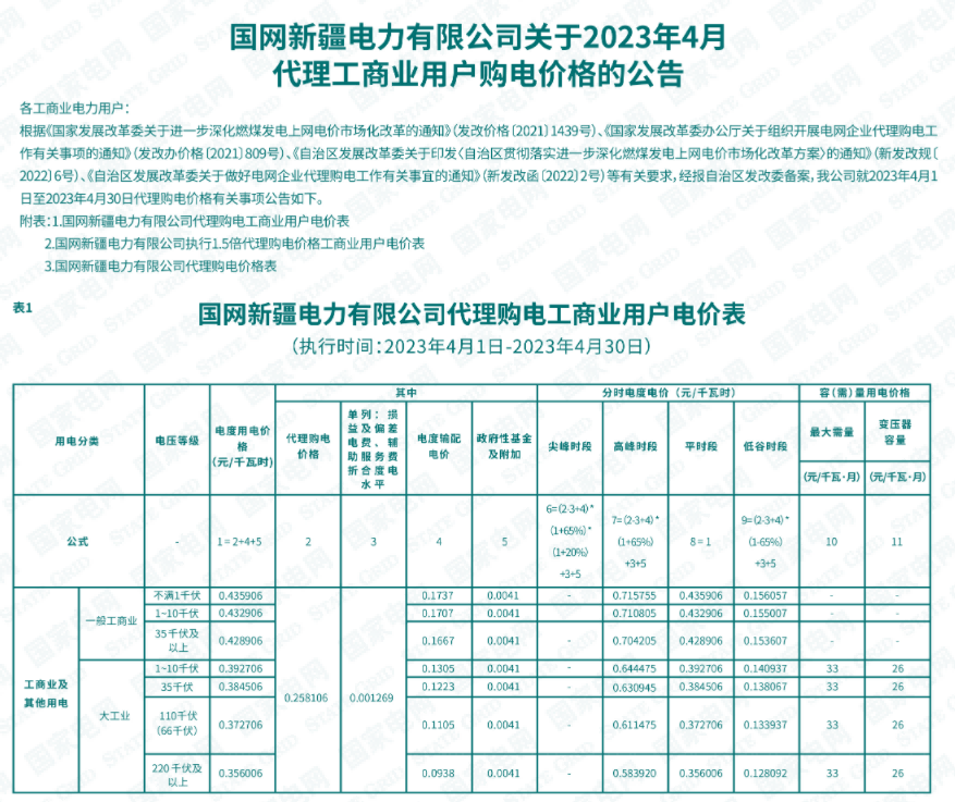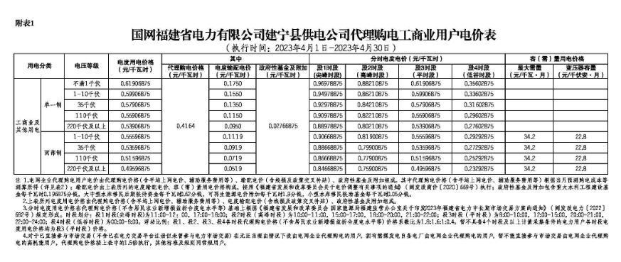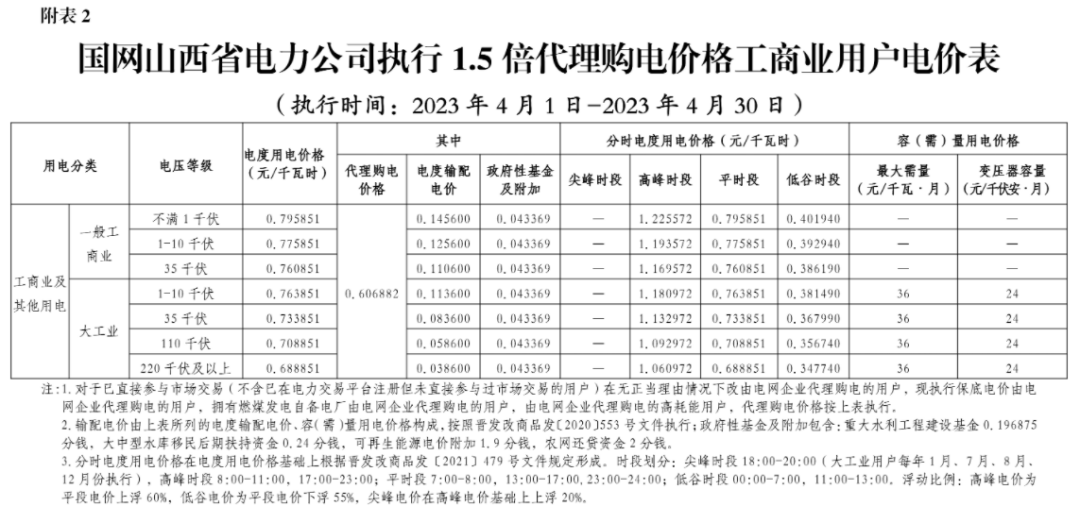 2023年4月各省代理购电价格汇总(工商业用户)