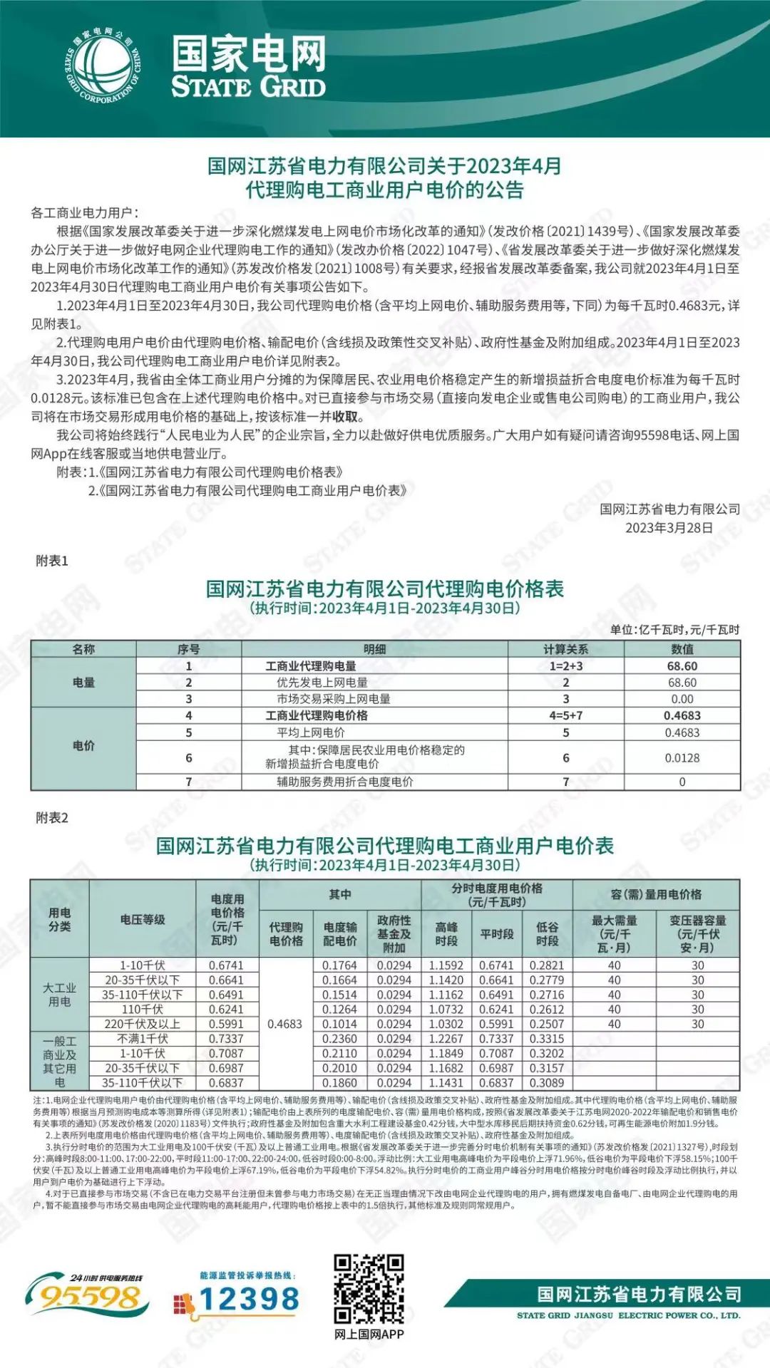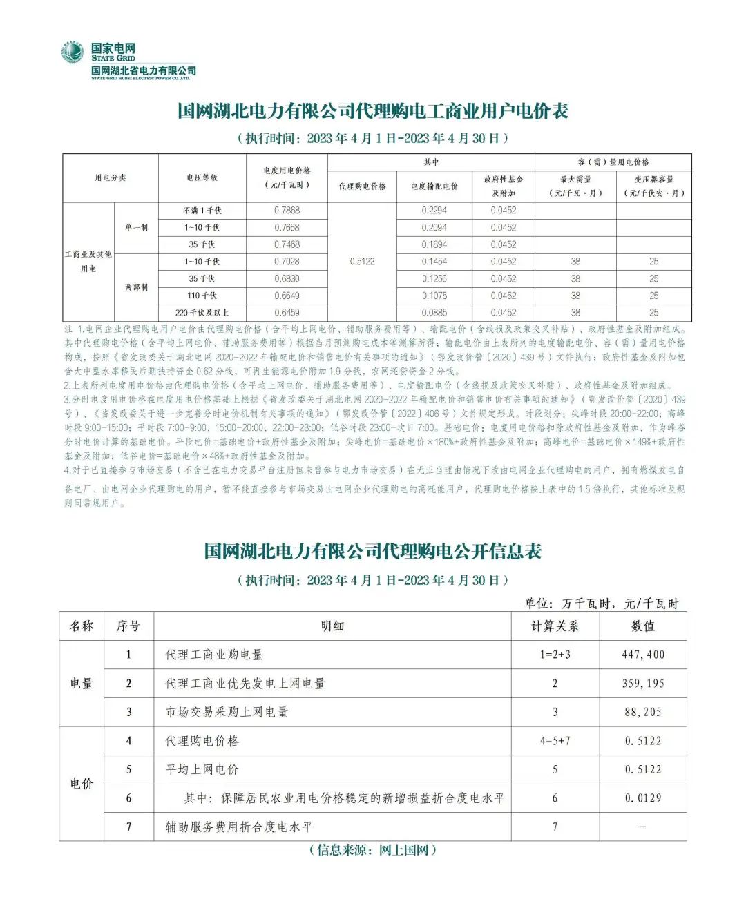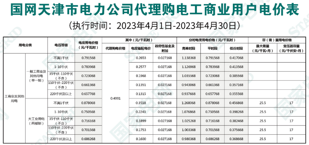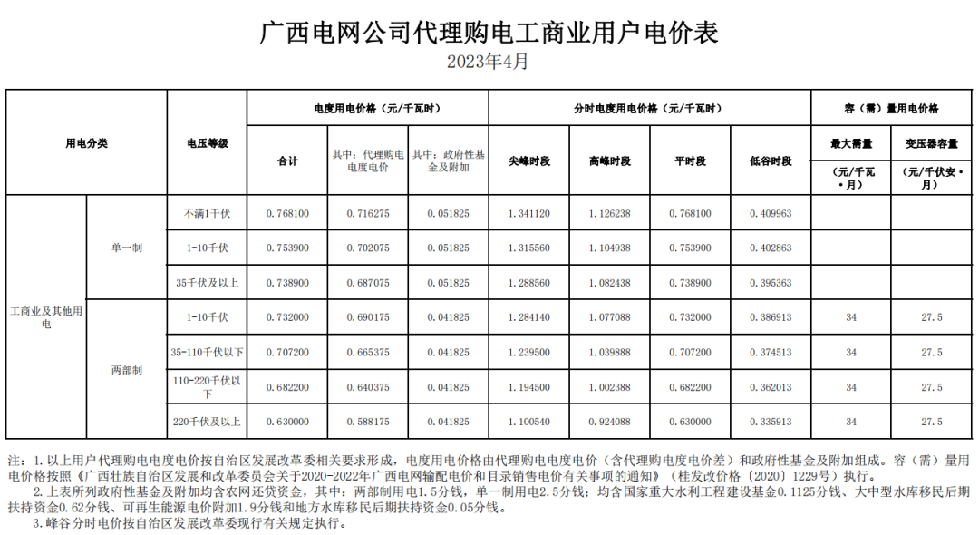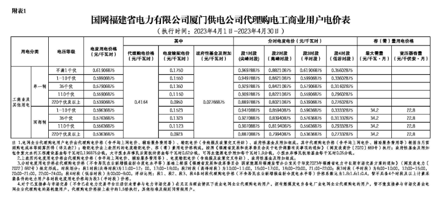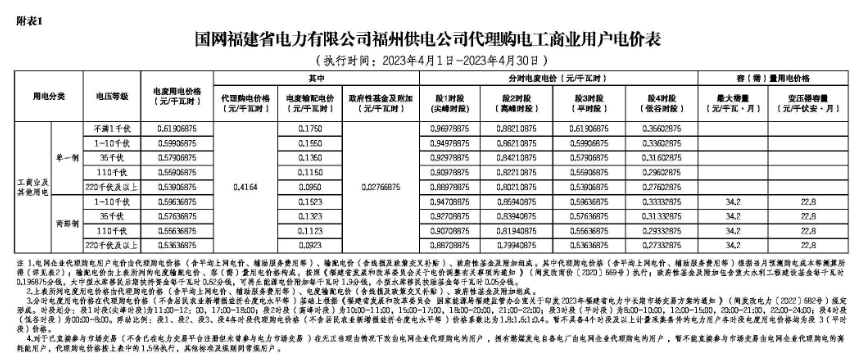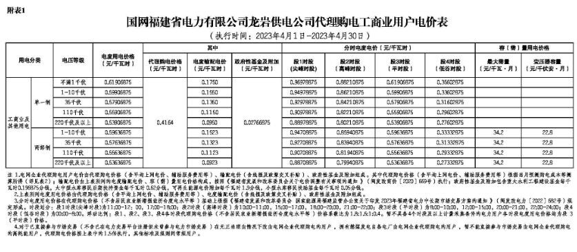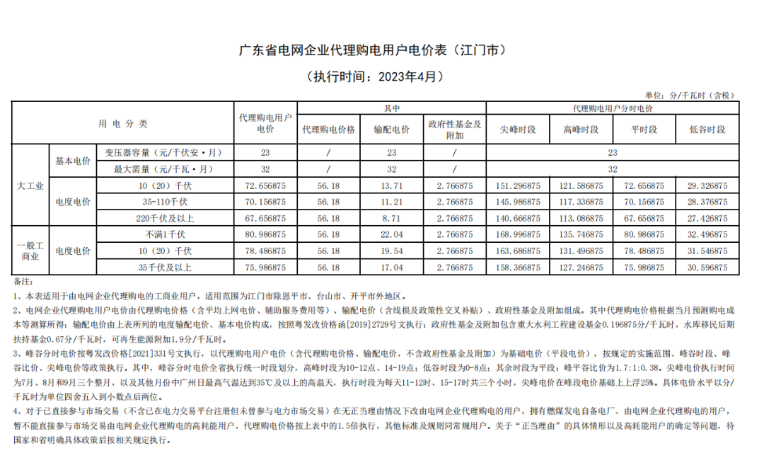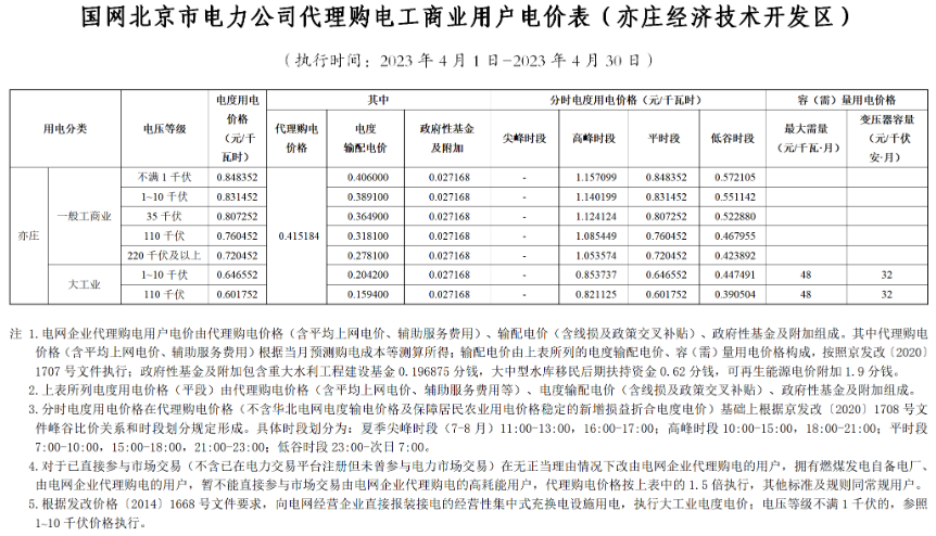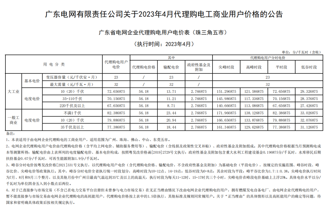 2023年4月各省代理购电价格汇总(工商业用户)
