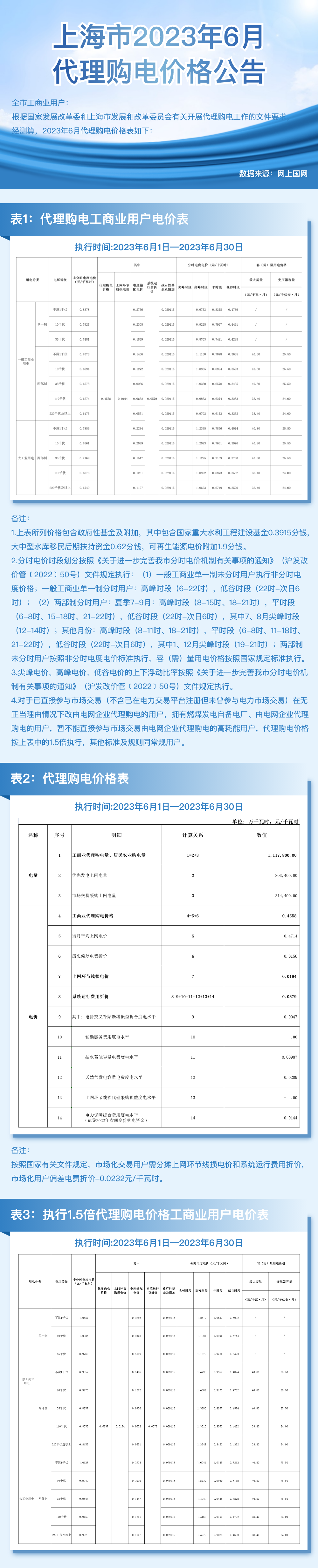 上海市6月份代理购电工商业用户电价表