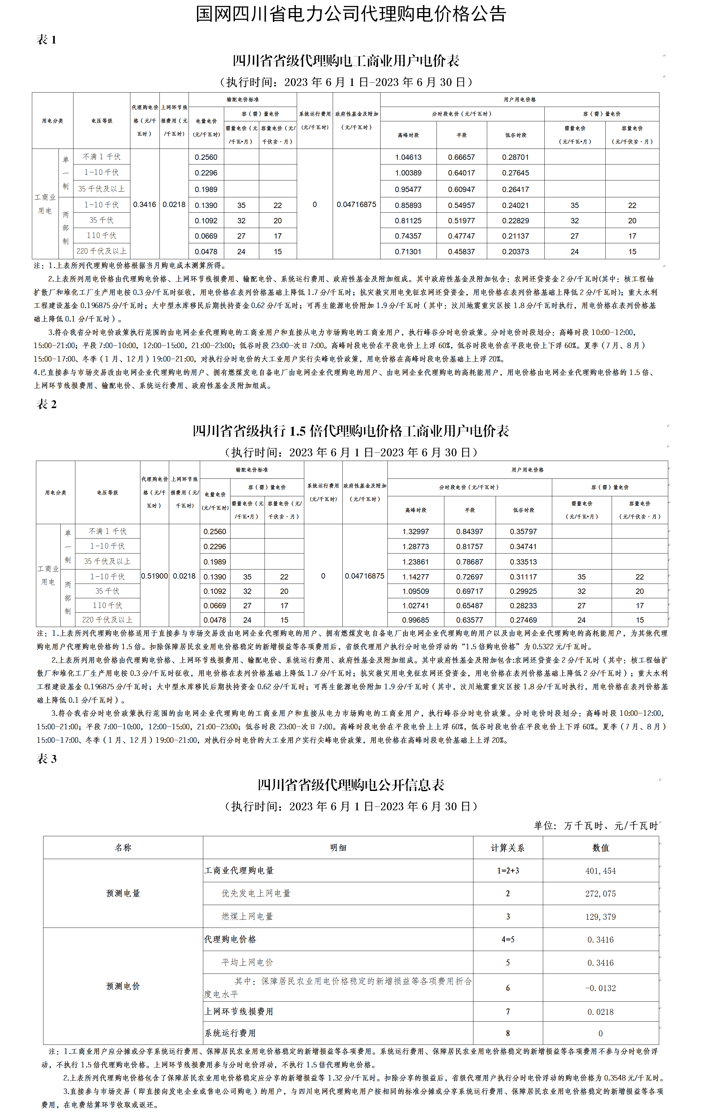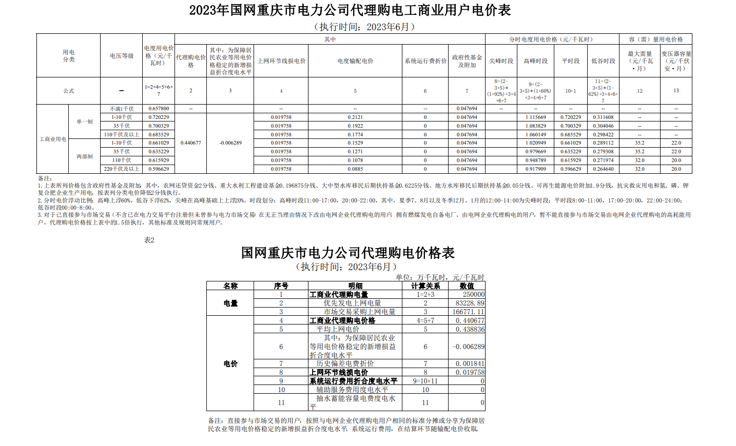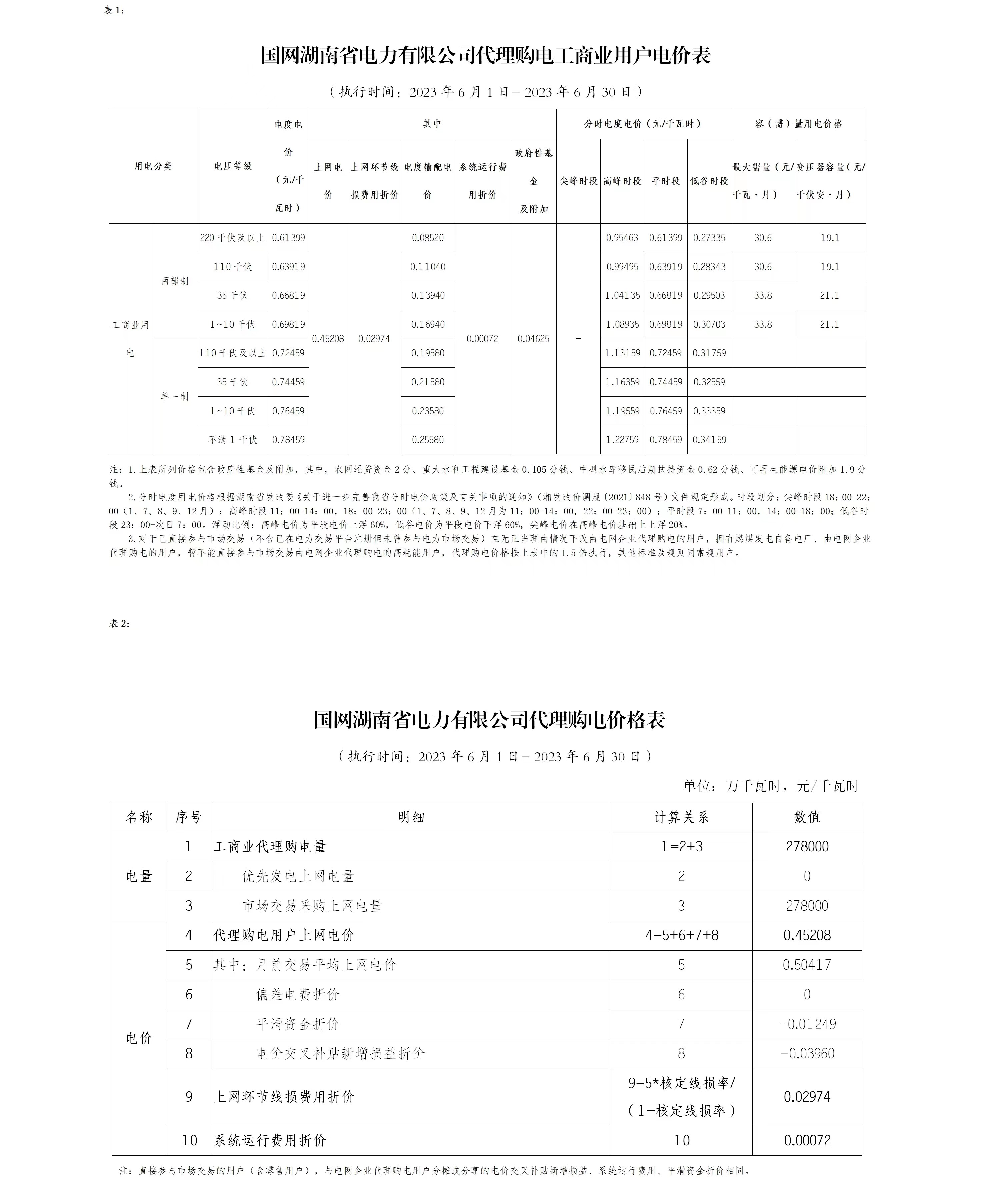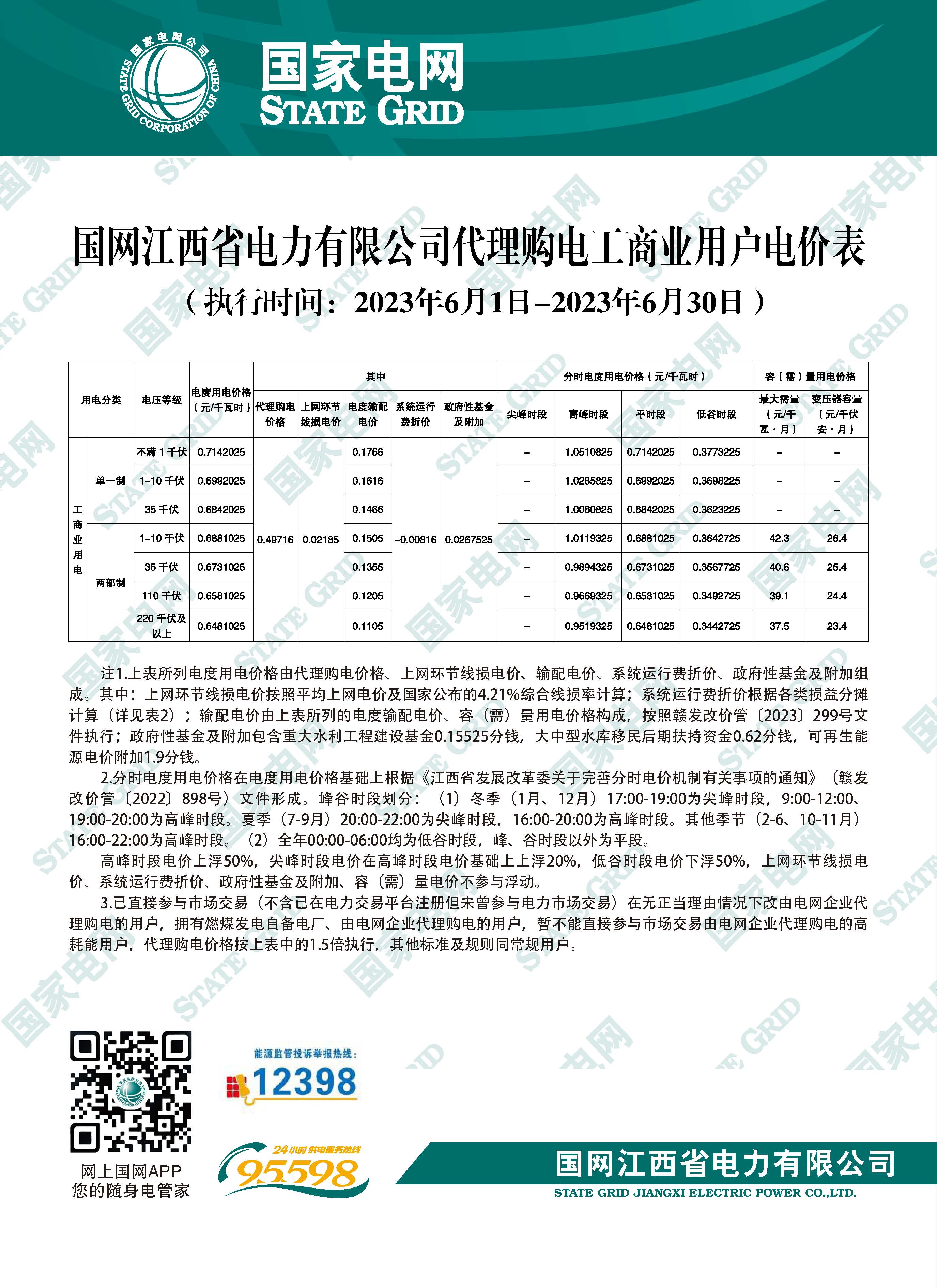 2023年6月份各省工商业电价(广东、深圳、广西、贵州、云南、海南)