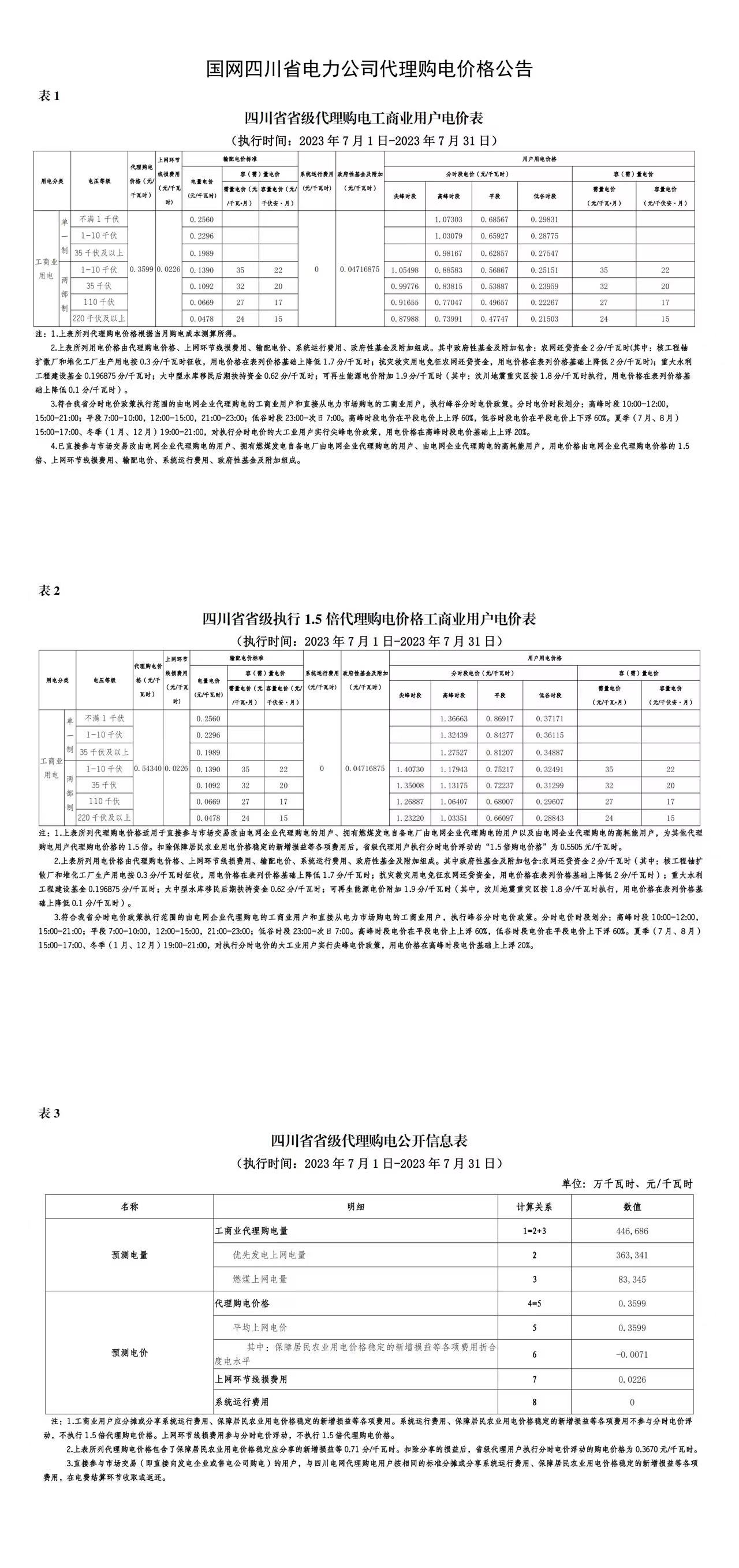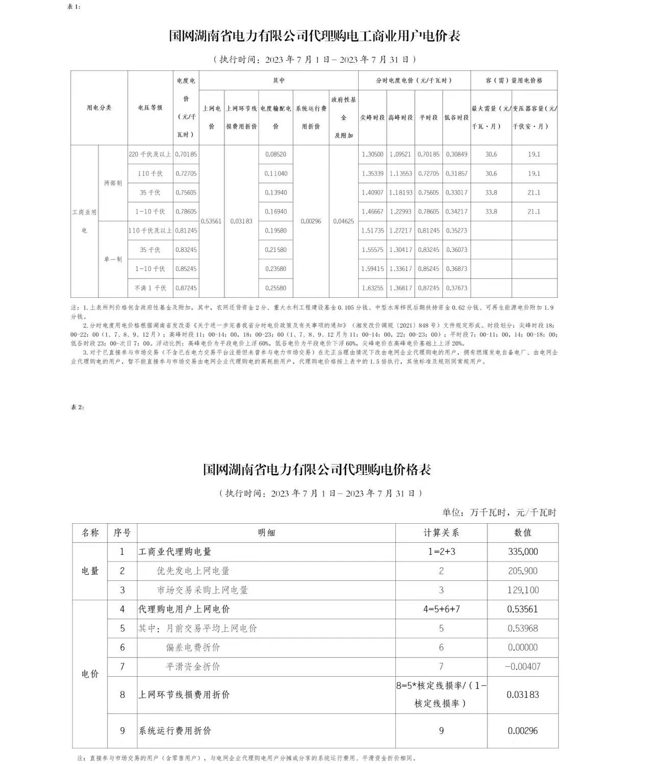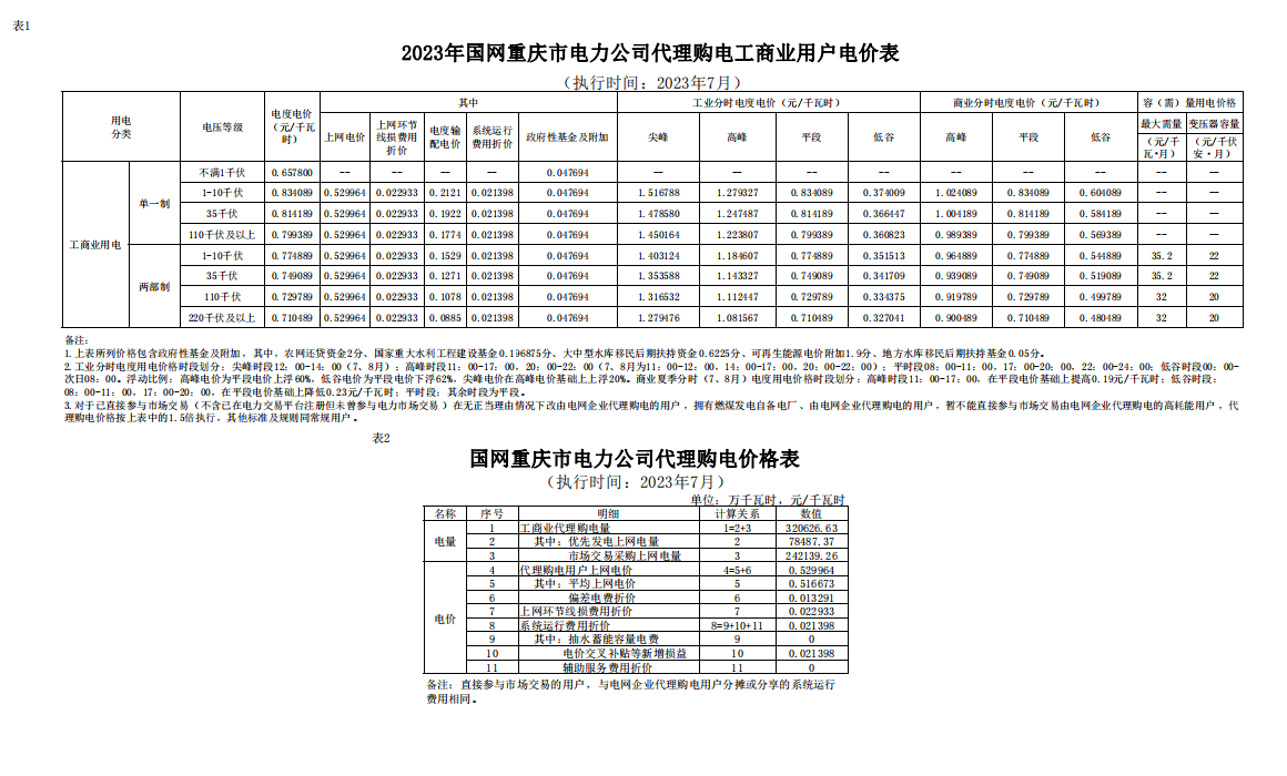2023年7月份各省工商业电价(广东、深圳、广西、贵州、云南、海南)