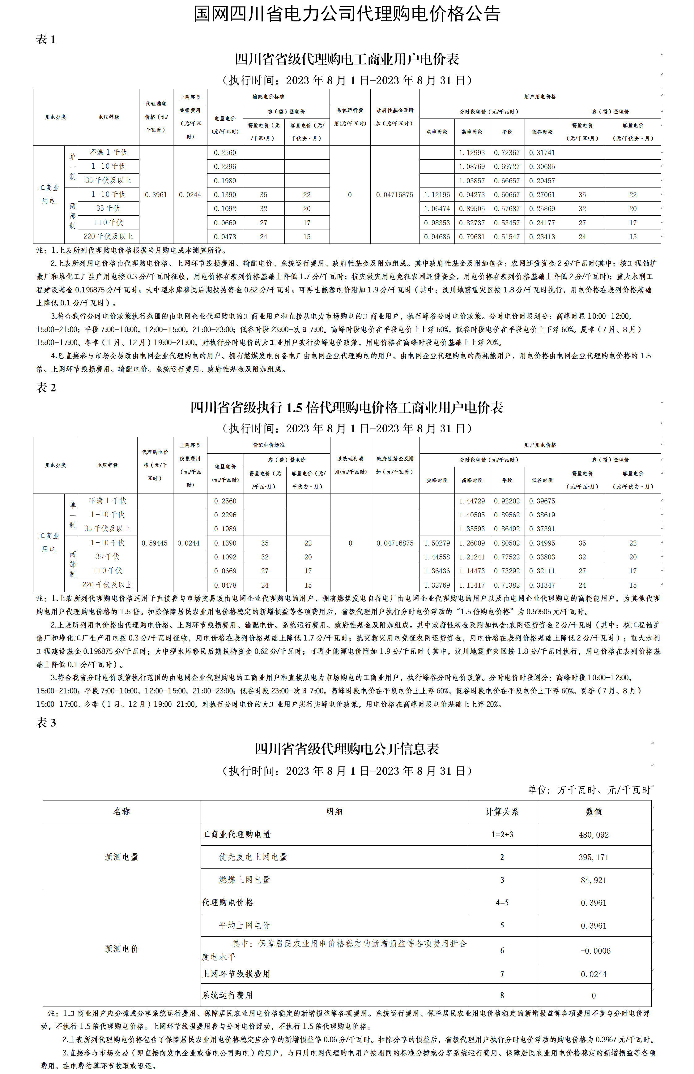 2023年8月份各省工商业电价(广东、深圳、广西、贵州、云南、海南)