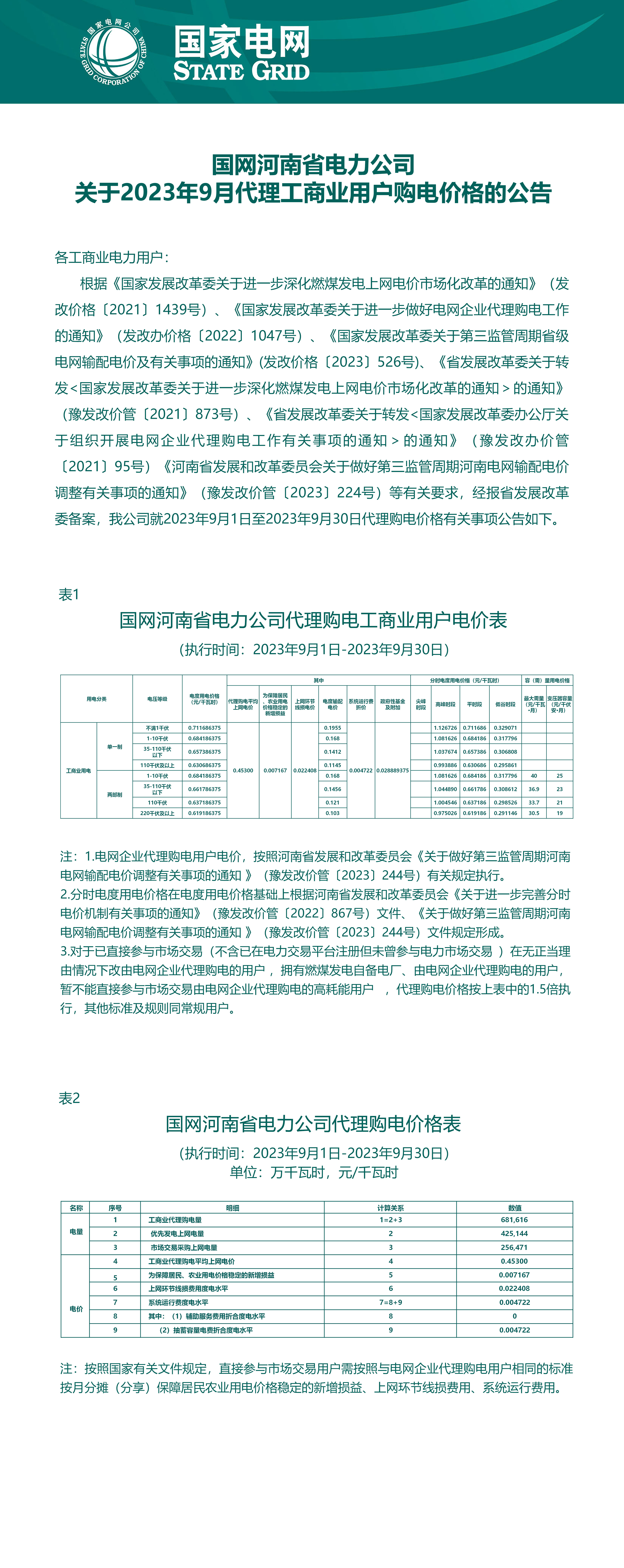 2023年9月份各省工商业电价(江苏、上海、浙江、安徽、湖北、河南)