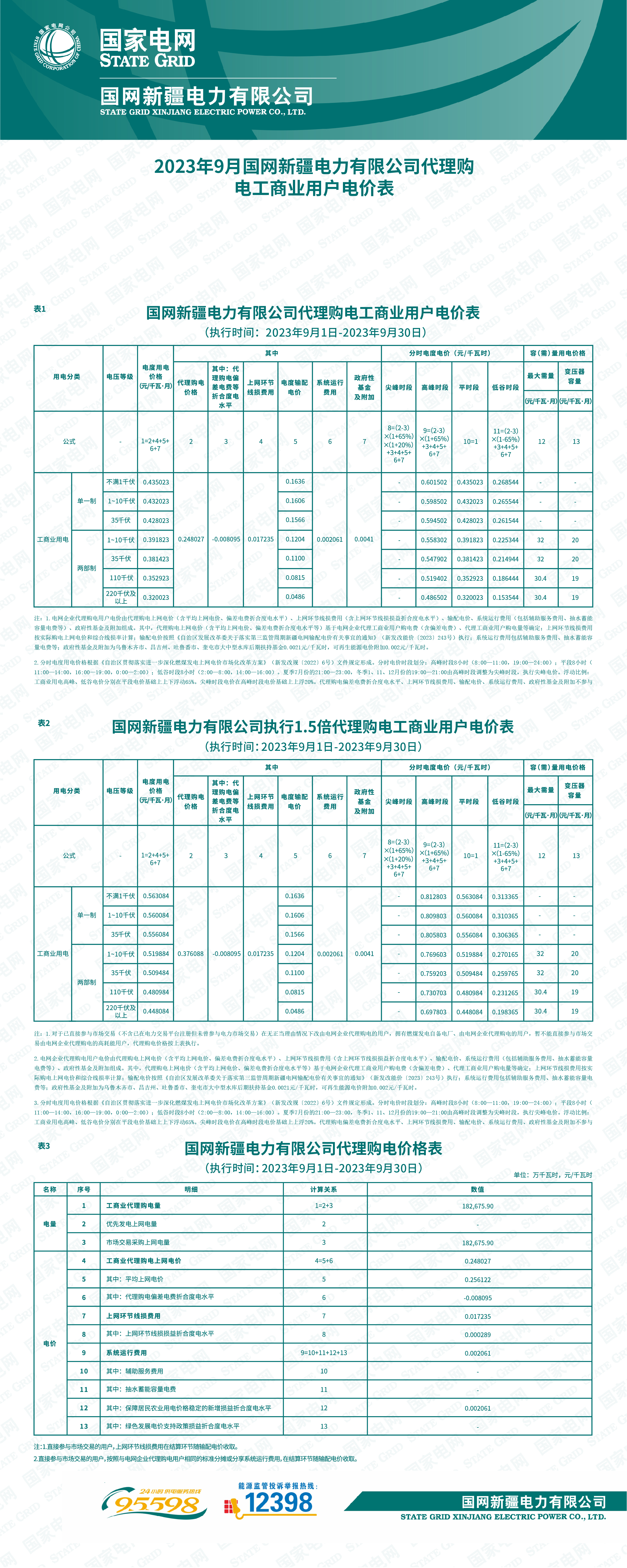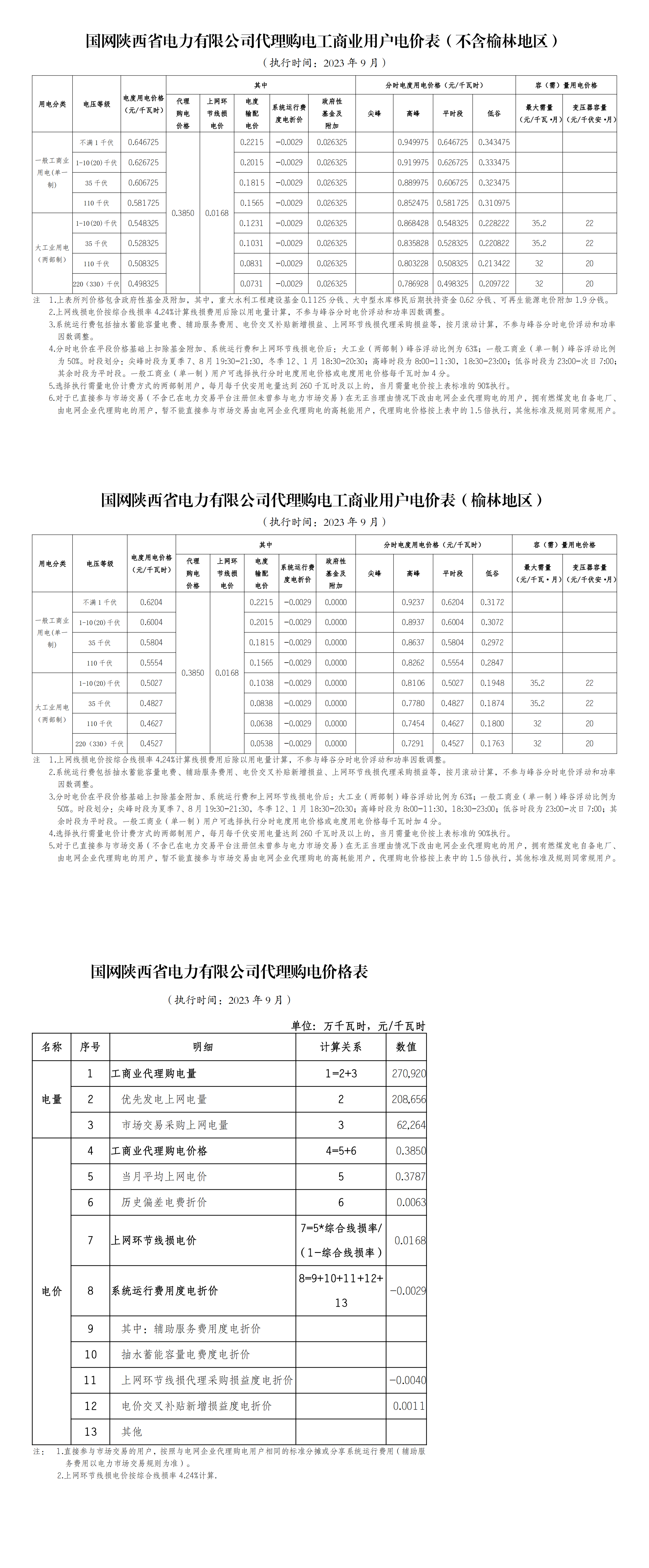 2023年9月份各省工商业电价(陕西、甘肃、宁夏、青海、新疆、西藏)