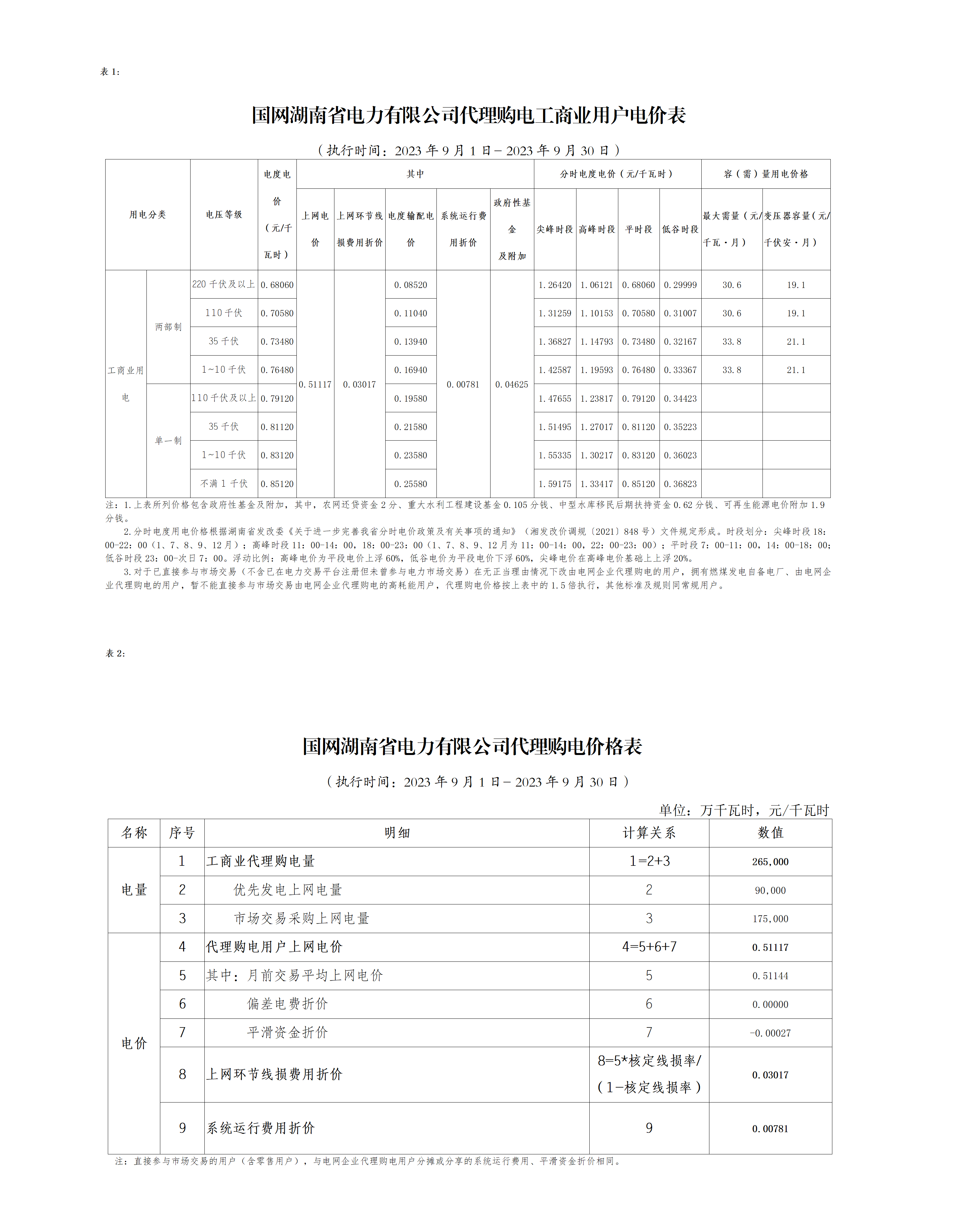 2023年9月份各省工商业电价(广东、深圳、广西、贵州、云南、海南)
