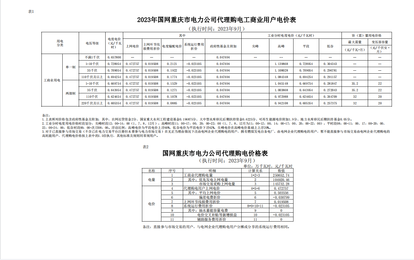 2023年9月份各省工商业电价(湖南、江西、福建、重庆、四川)