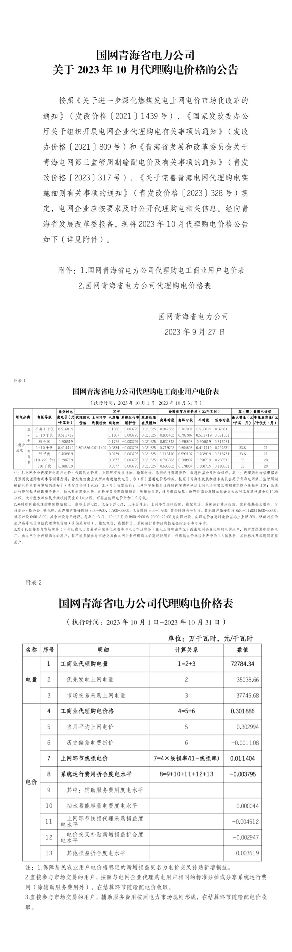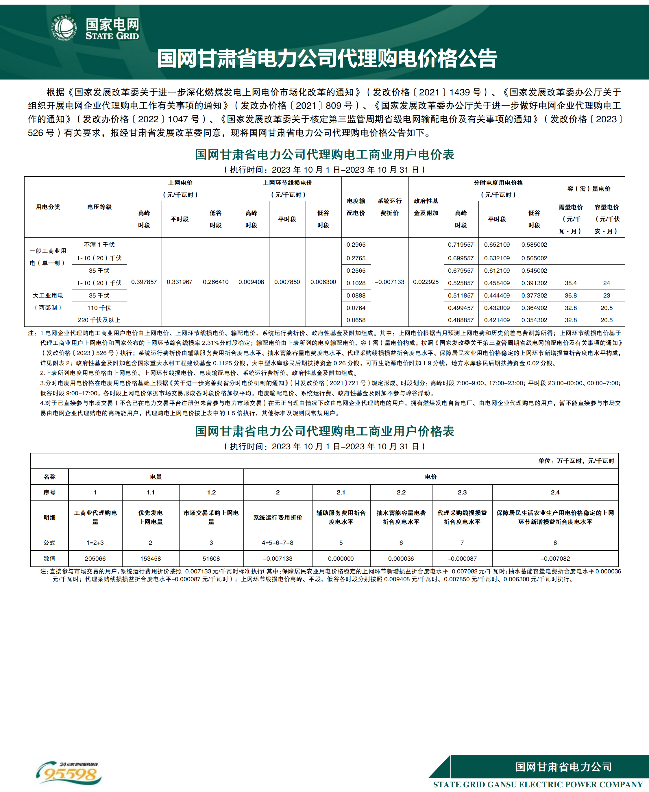 2023年10月份各省工商业电价(陕西、甘肃、宁夏、青海、新疆)
