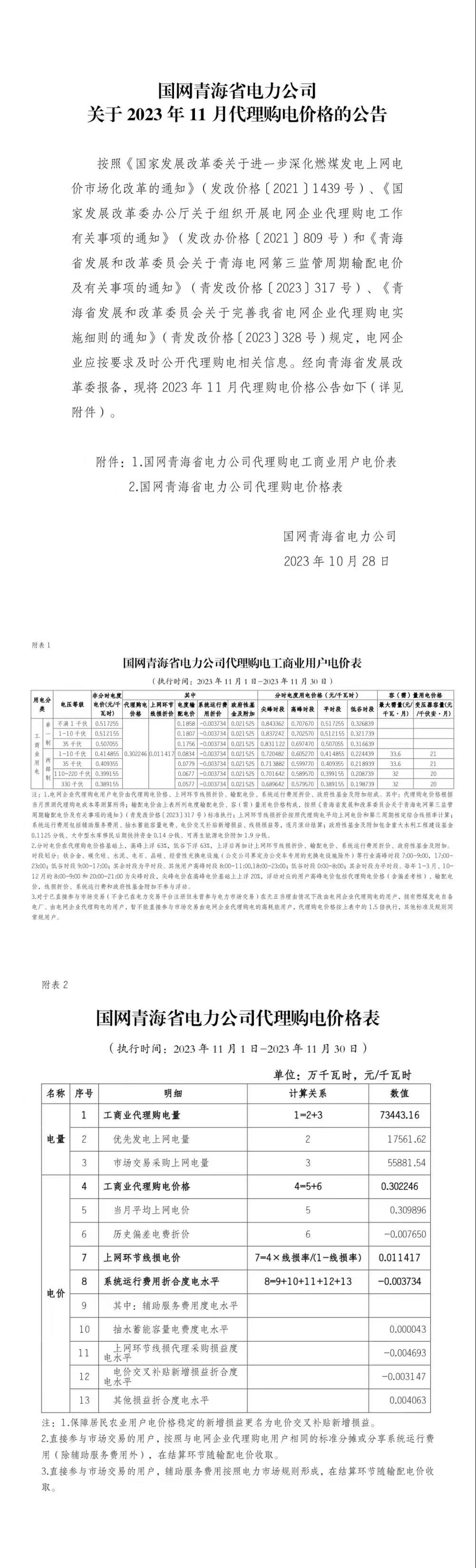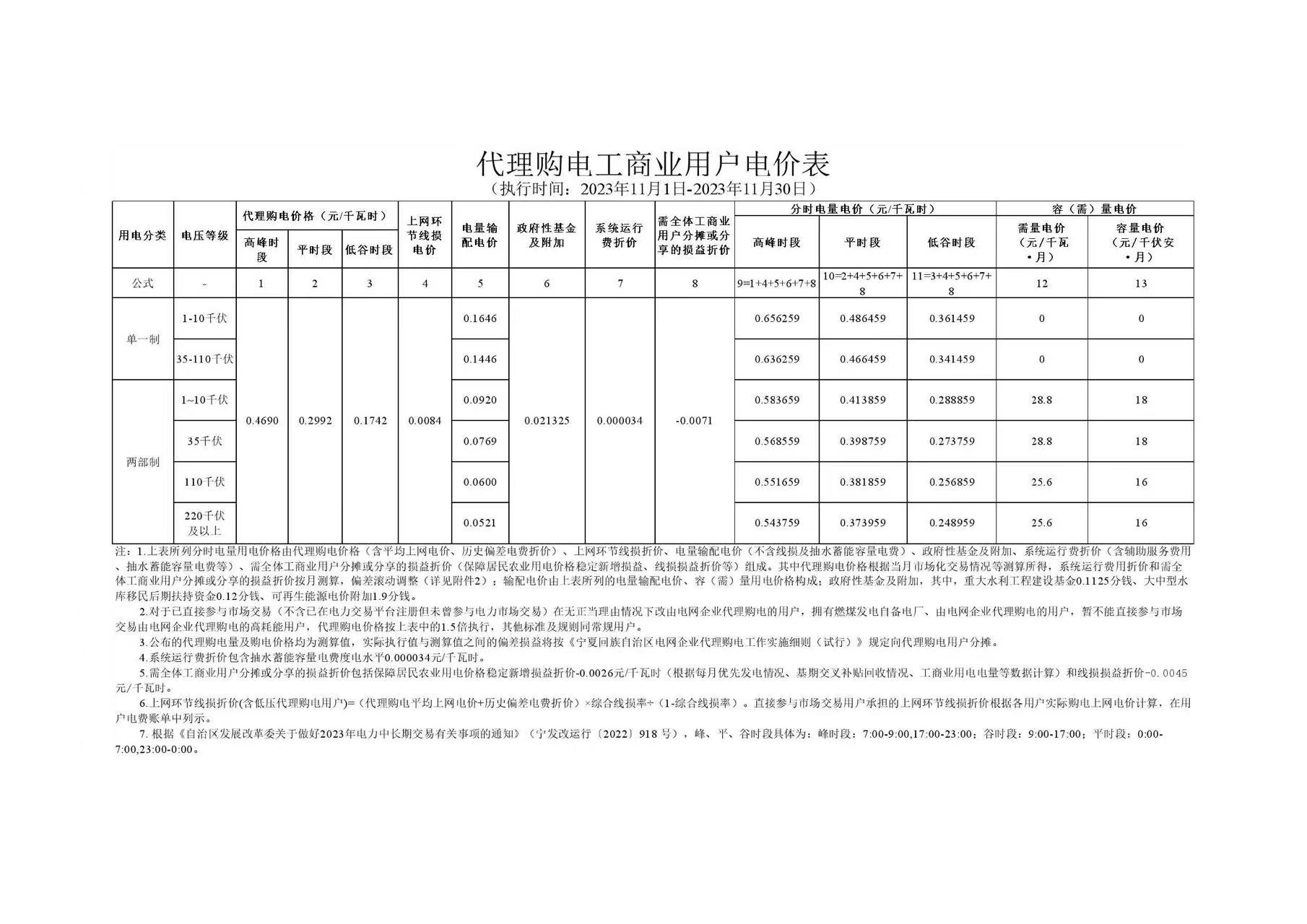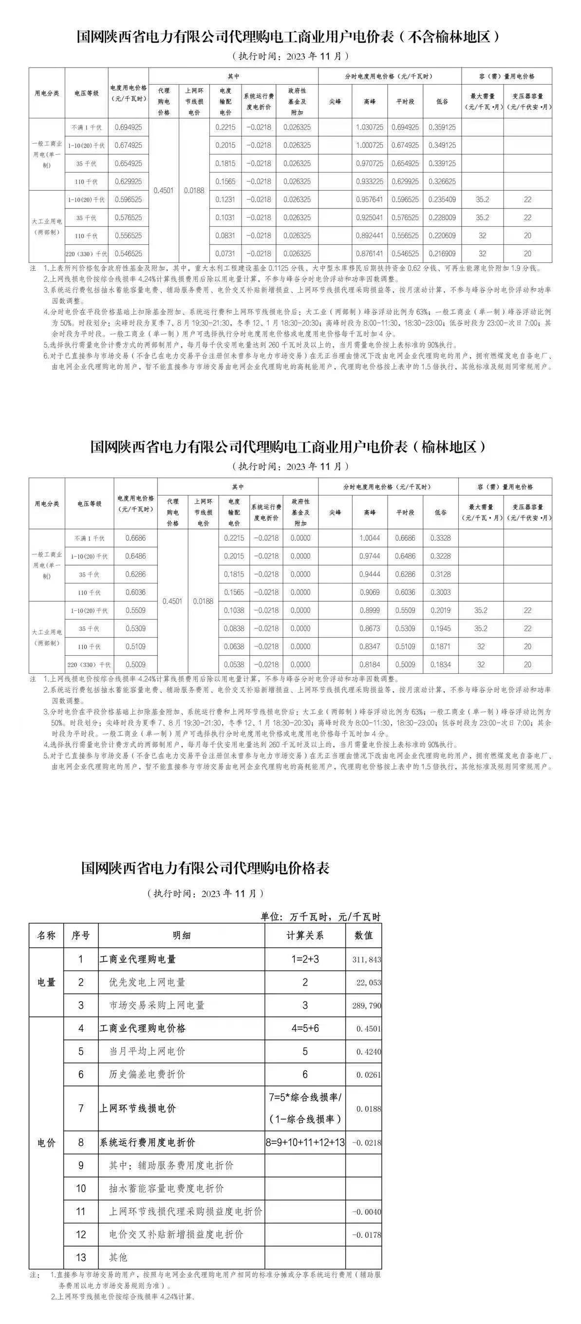 2023年11月份各省工商业电价(陕西、甘肃、宁夏、青海、新疆)