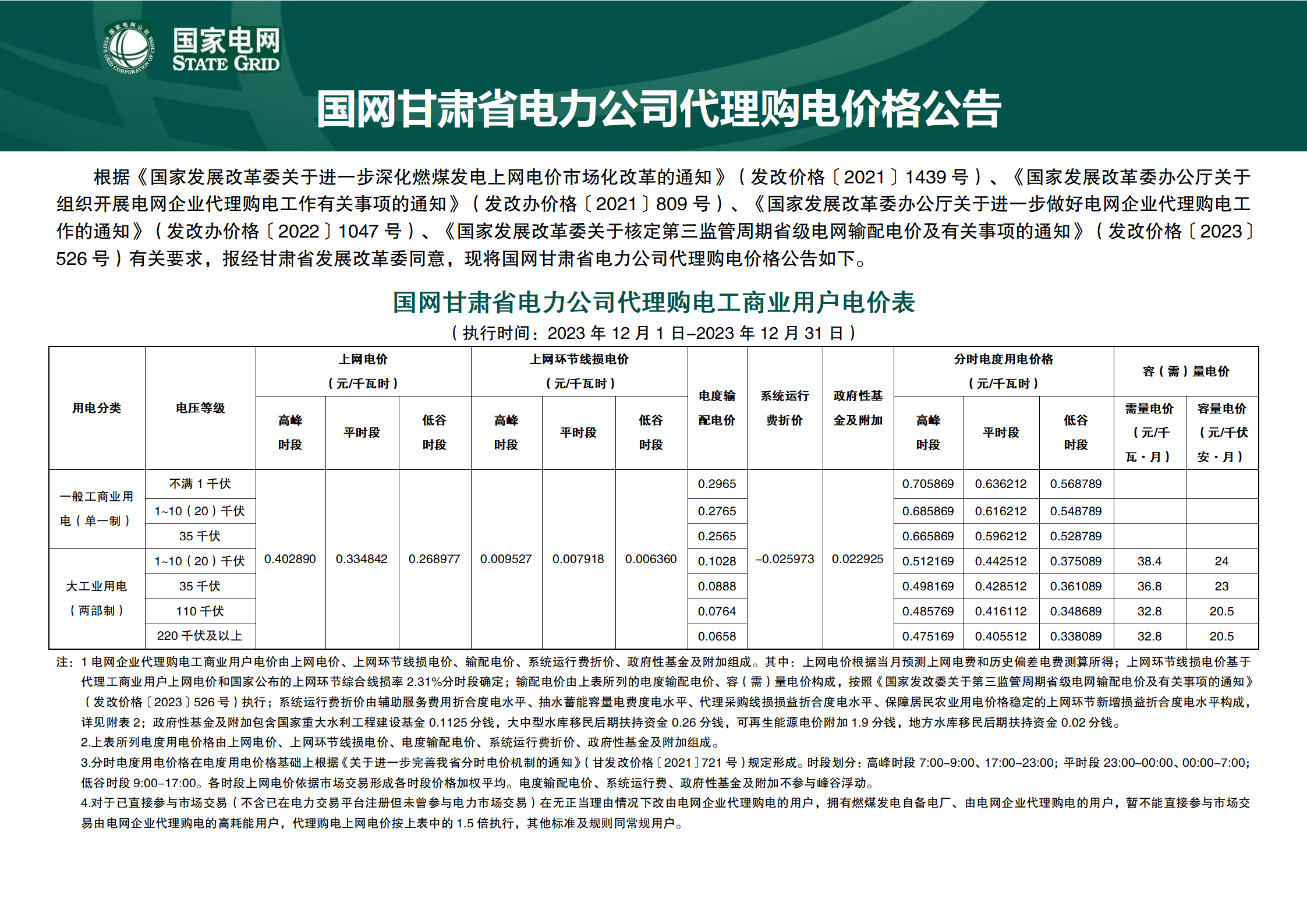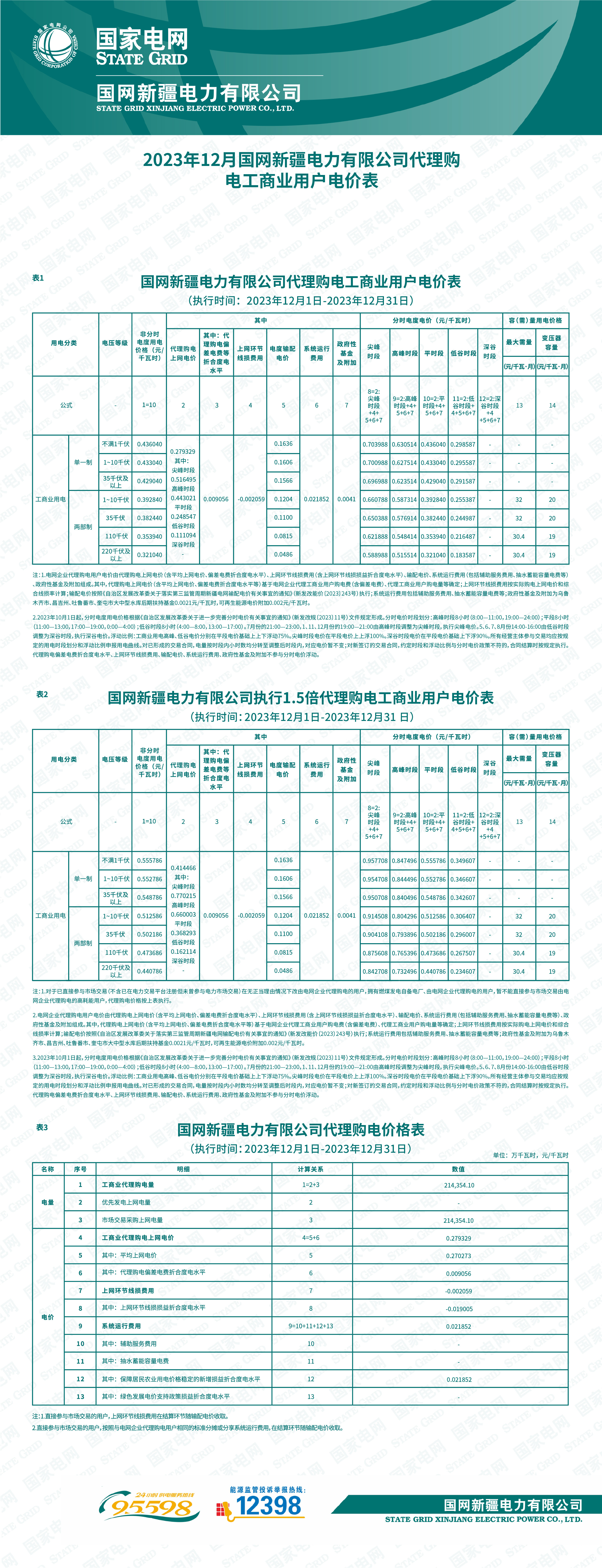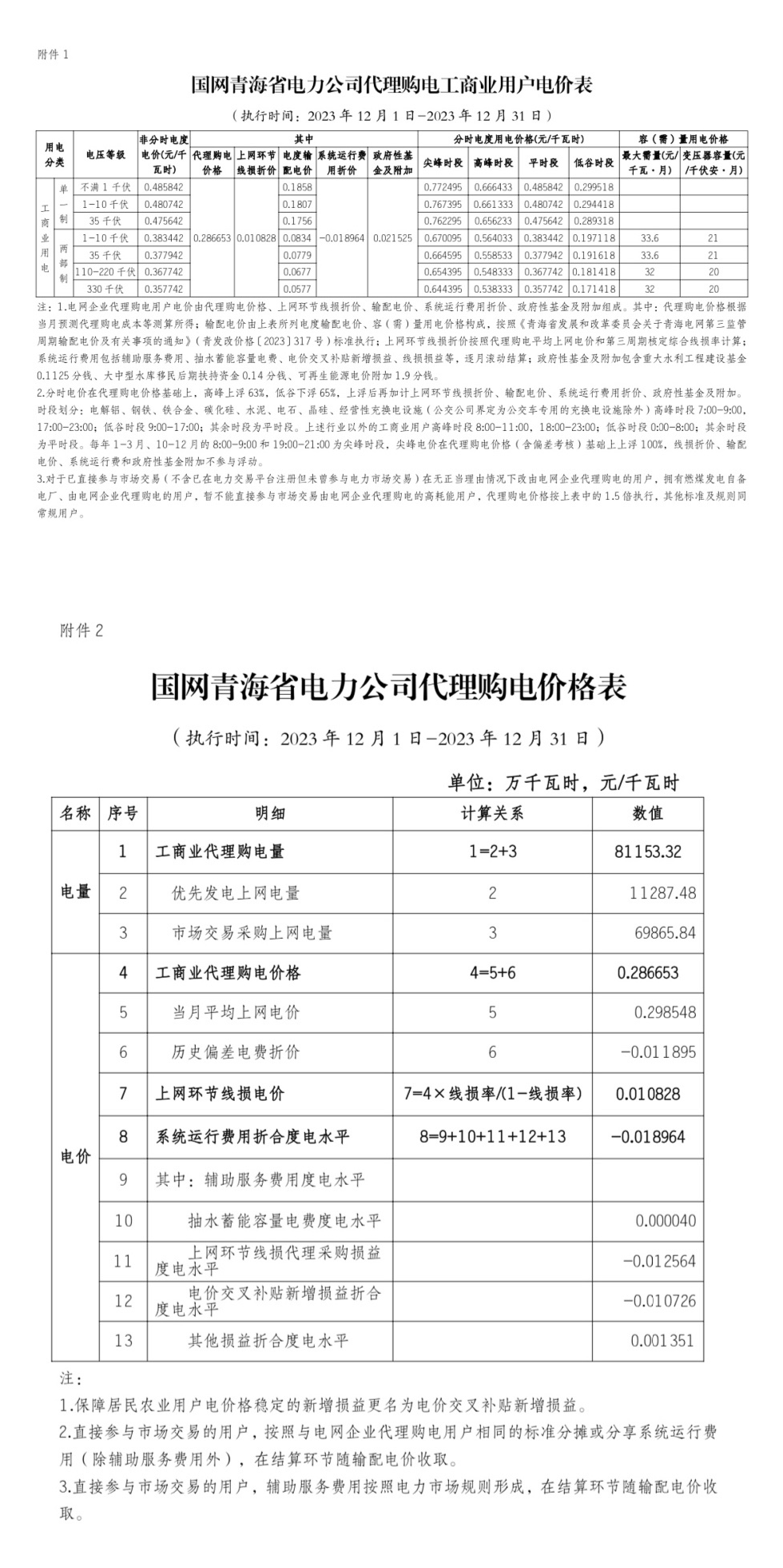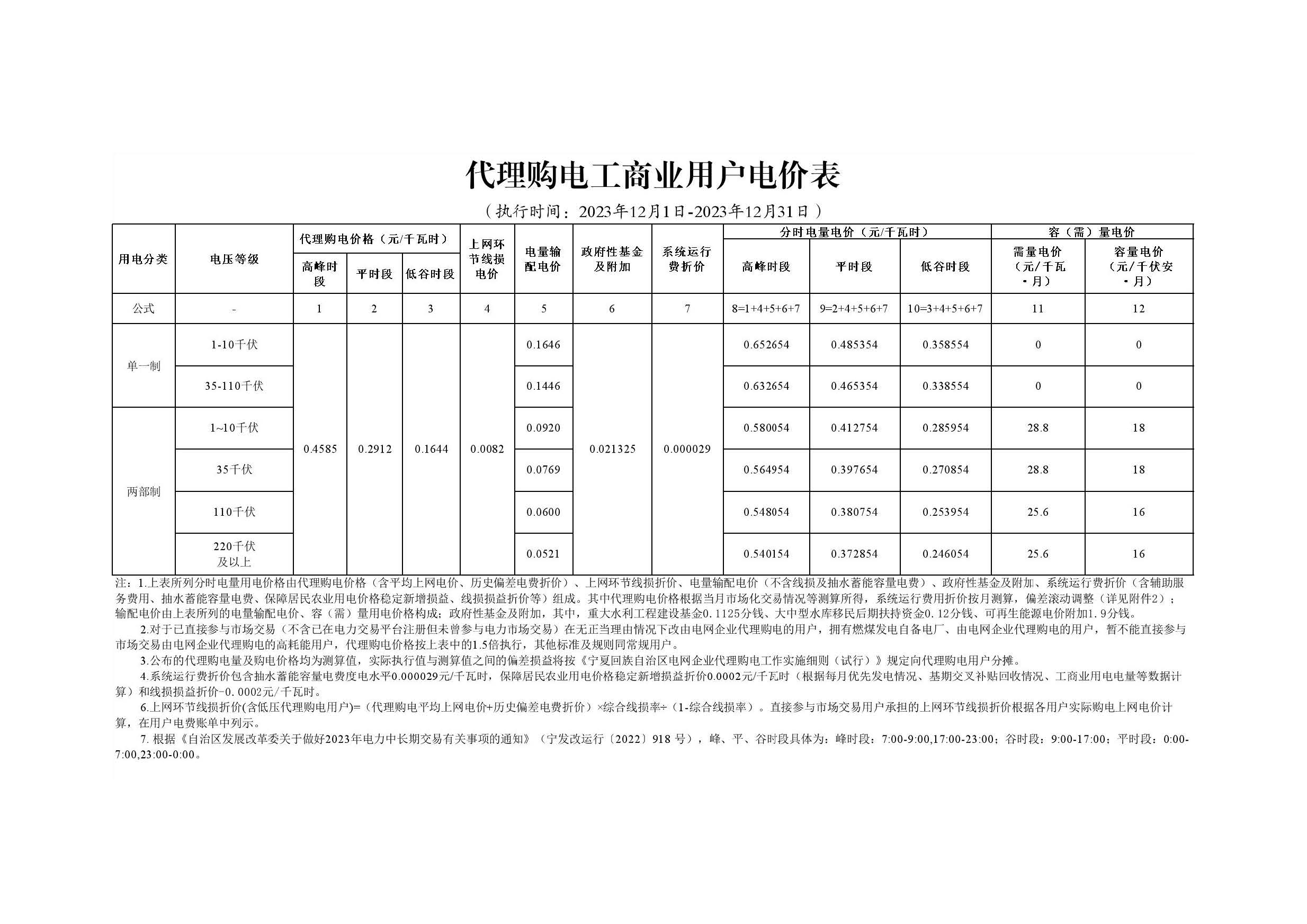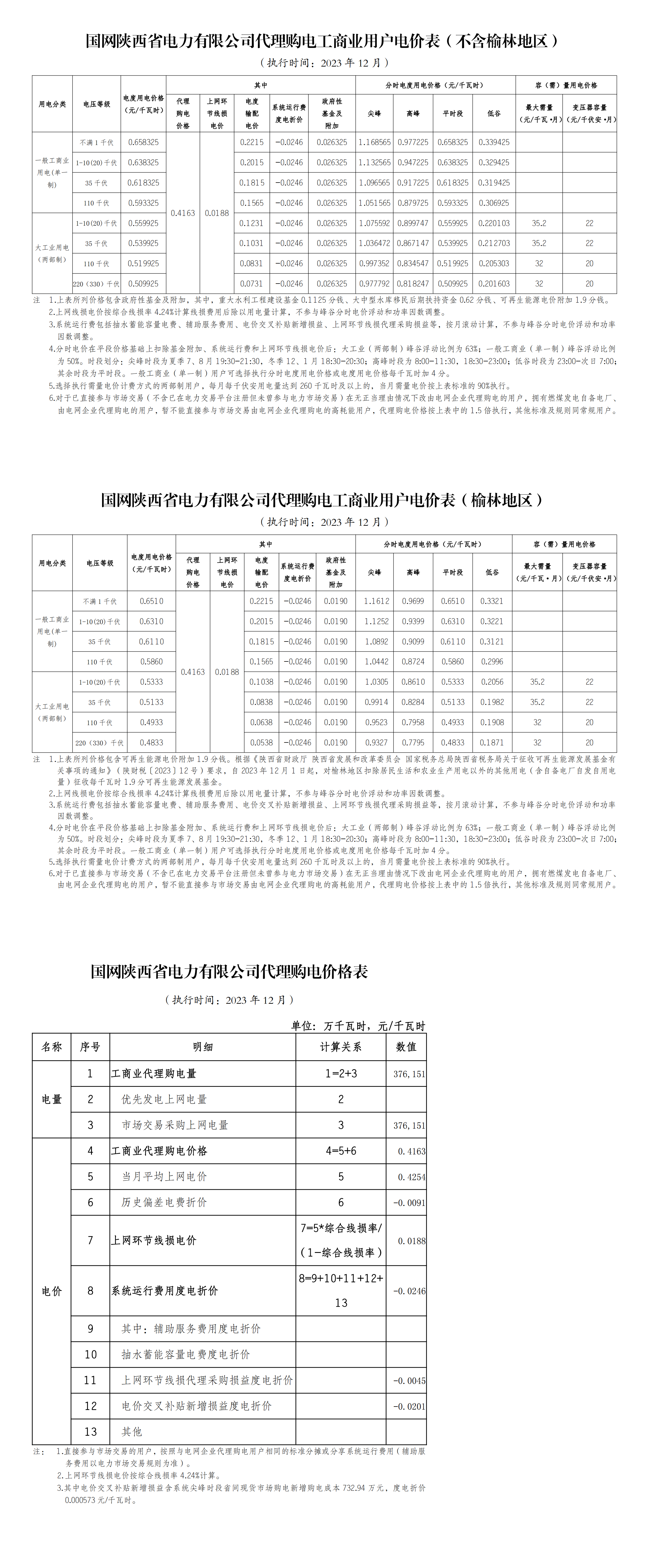 2023年12月份各省工商业电价(陕西、甘肃、宁夏、青海、新疆)