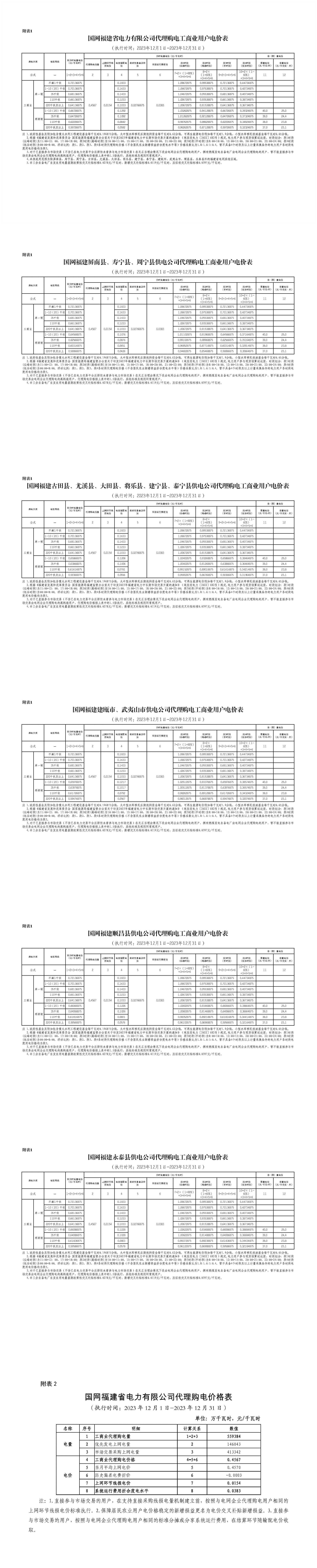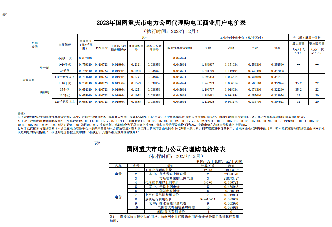 代理购电工商业用户电价表