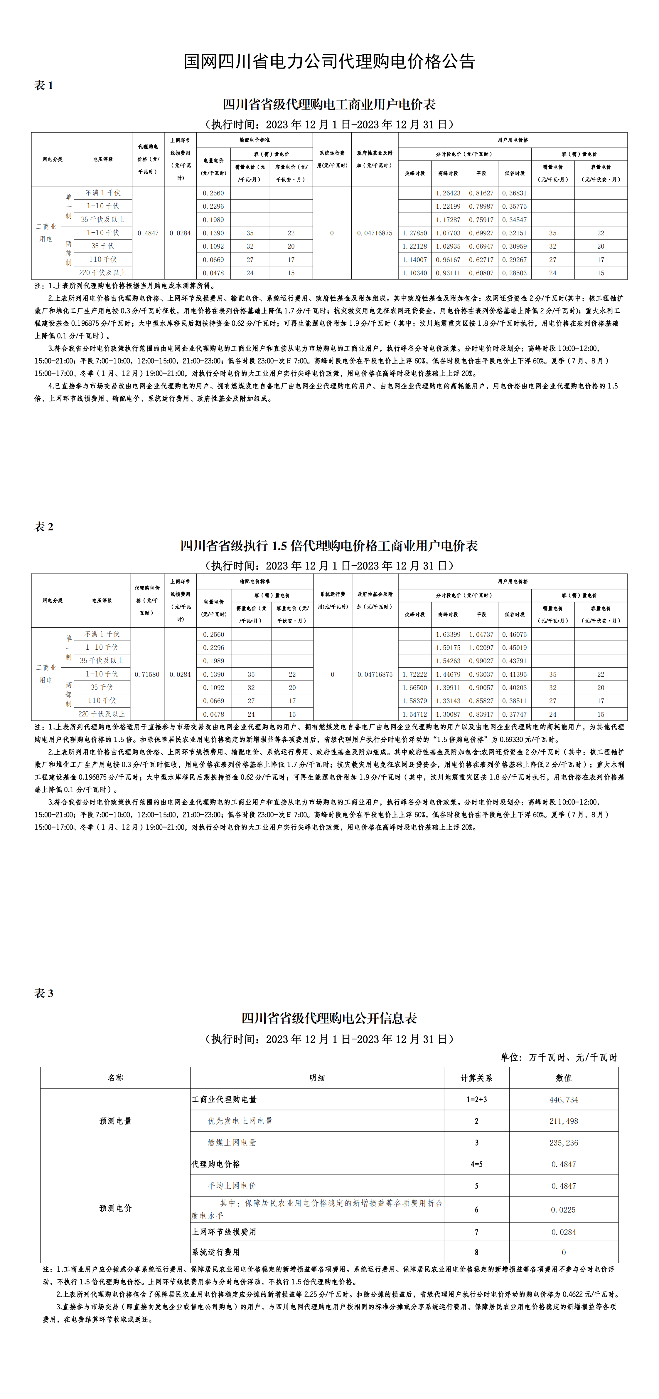 2023年12月份各省工商业电价(广东、深圳、广西、贵州、云南、海南)