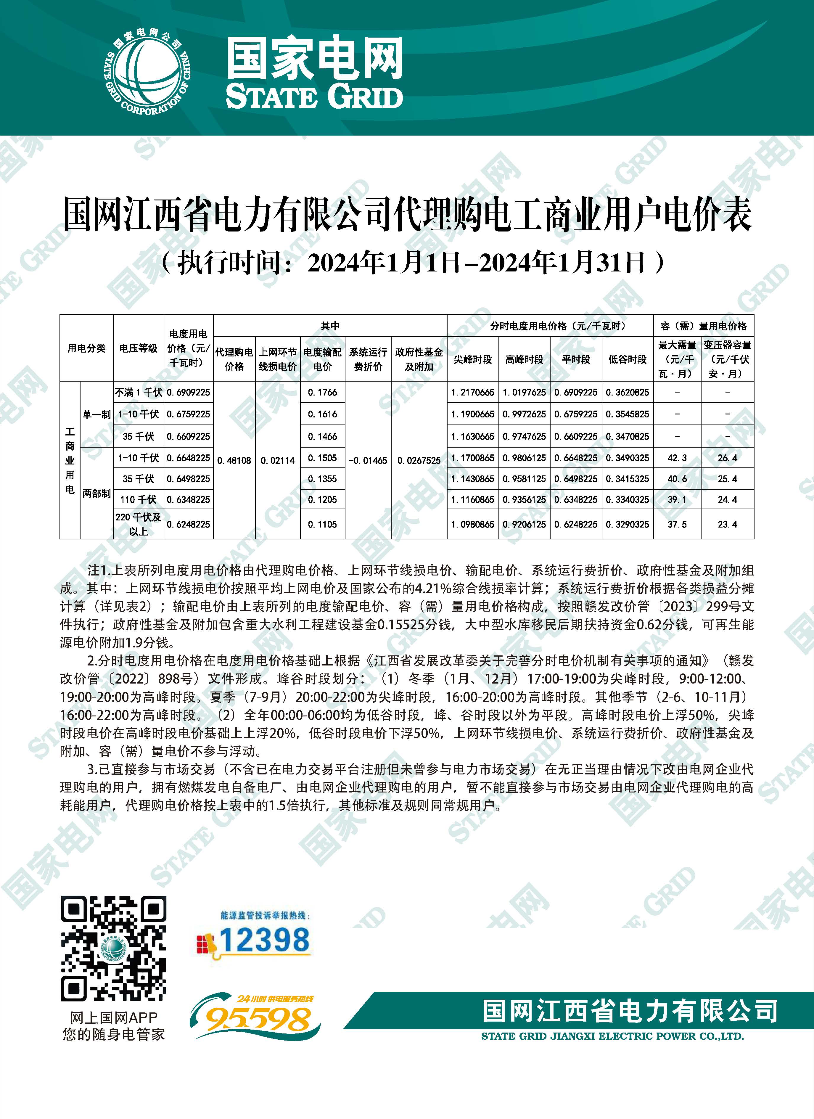 2024年1月份各省工商业电价(陕西、甘肃、宁夏、青海、新疆)