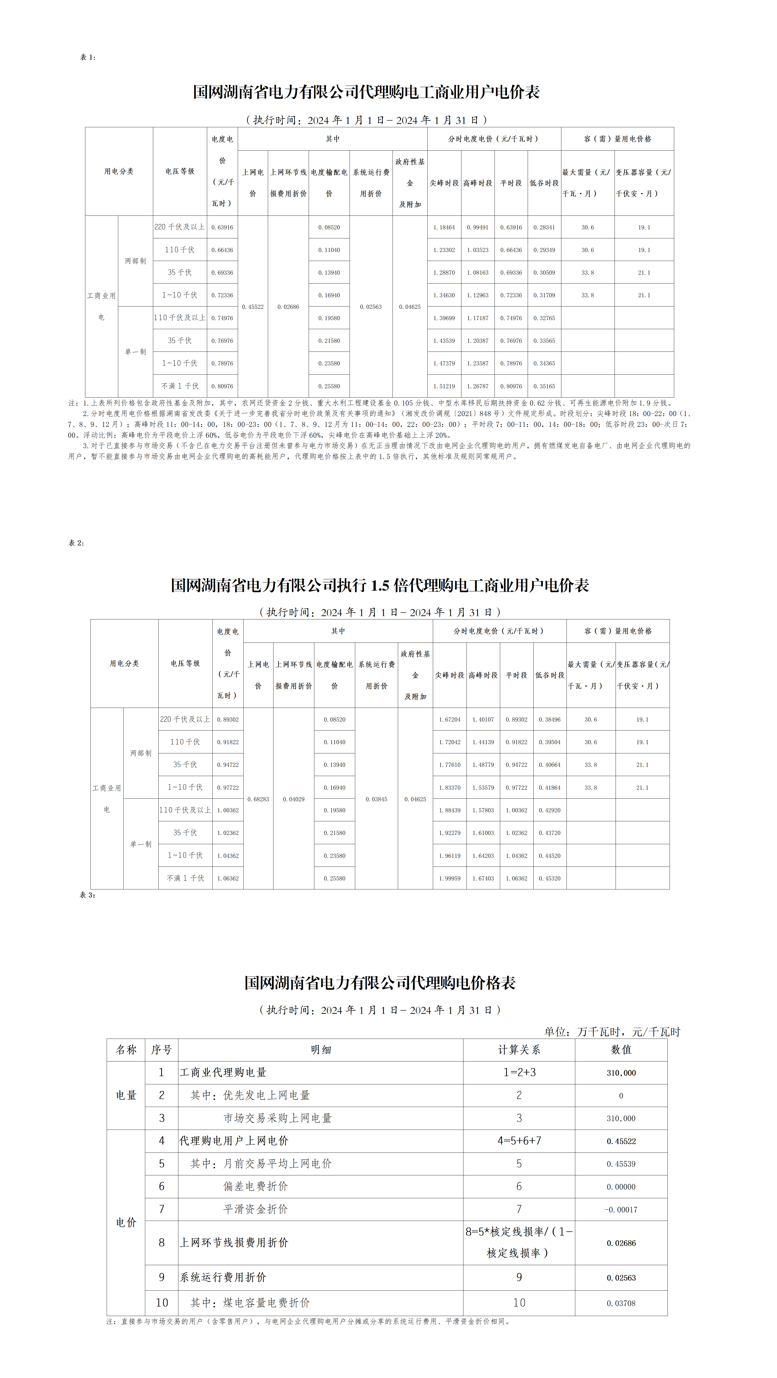 2024年1月份各省工商业电价(湖南、江西、福建、重庆、四川)